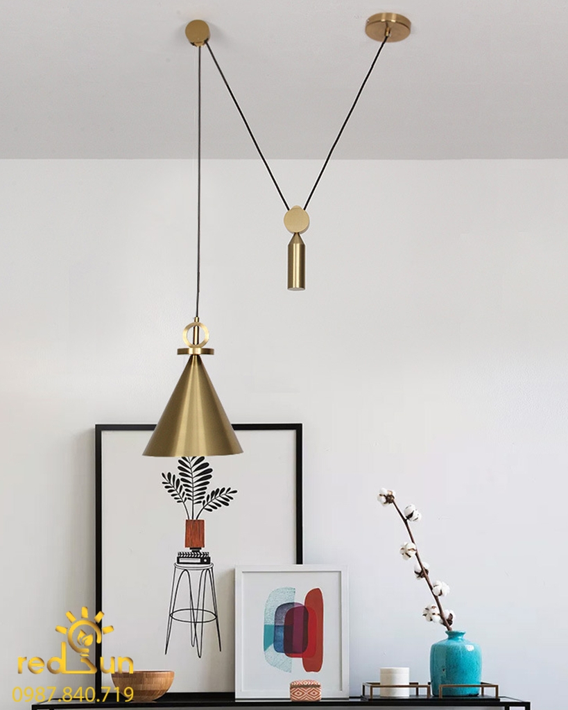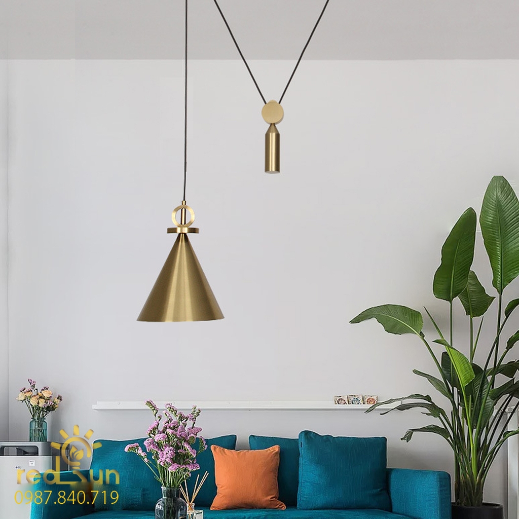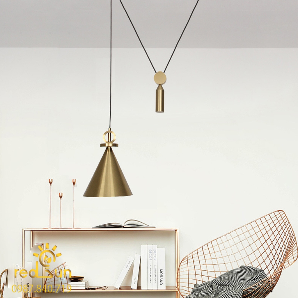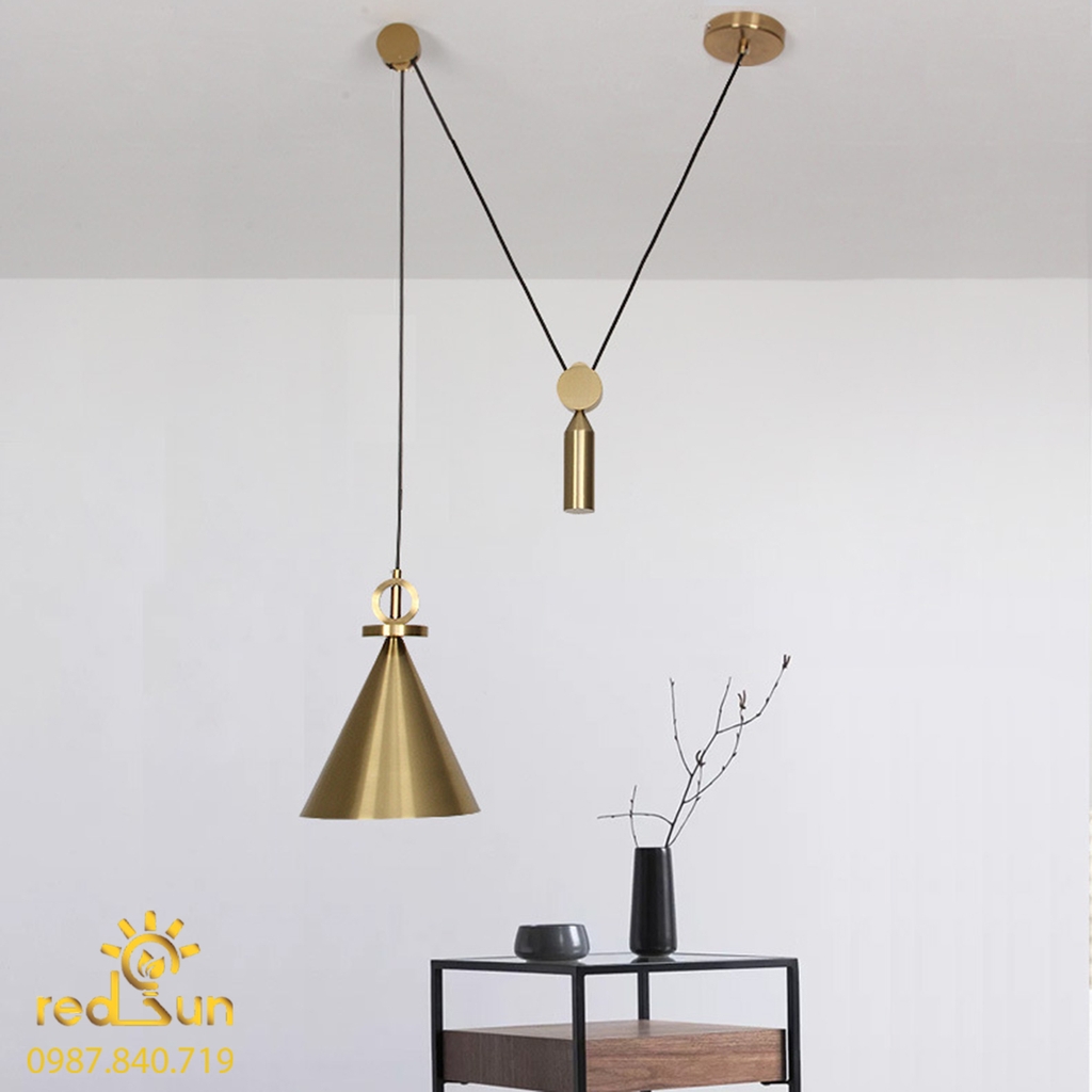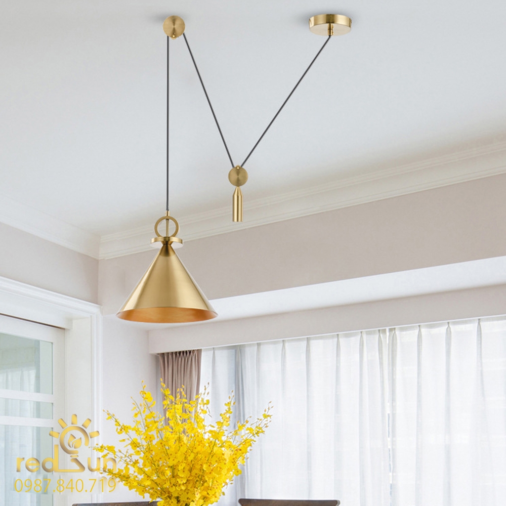 Chao đèn thả ròng rọc phễu đồng CDT-T031