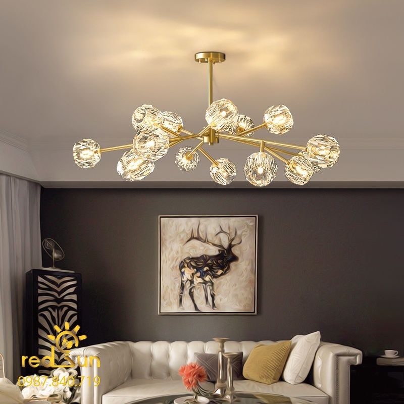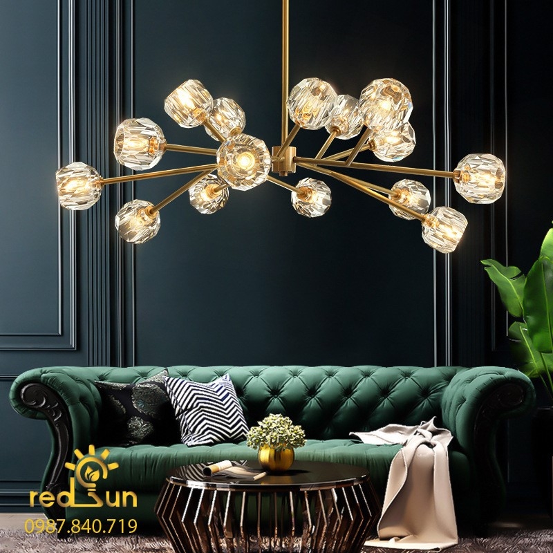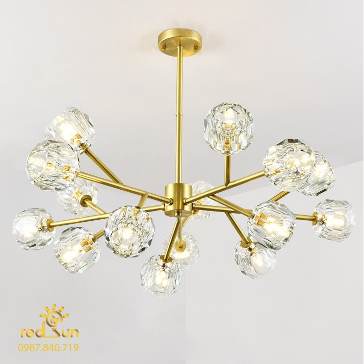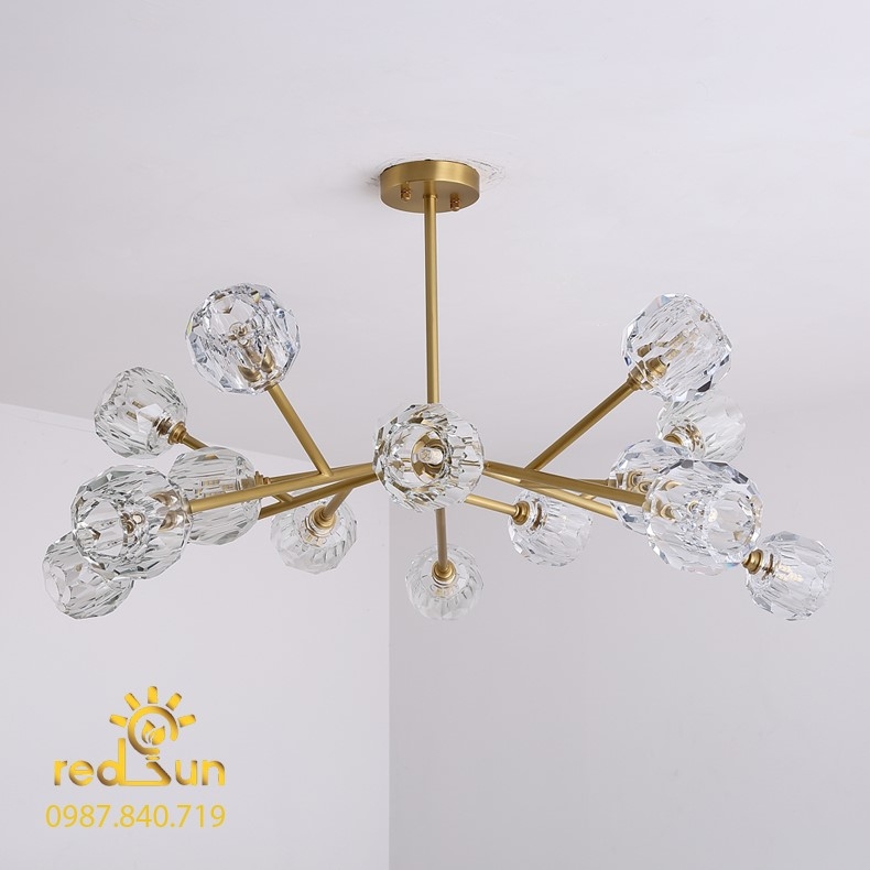 Đèn chùm pha lê 15 bóng thiết kế với kiểu dáng đặc biệt theo phong cách Nordic - Bắc Âu tạo nên sự phá cách, cá tính và hiện đại.