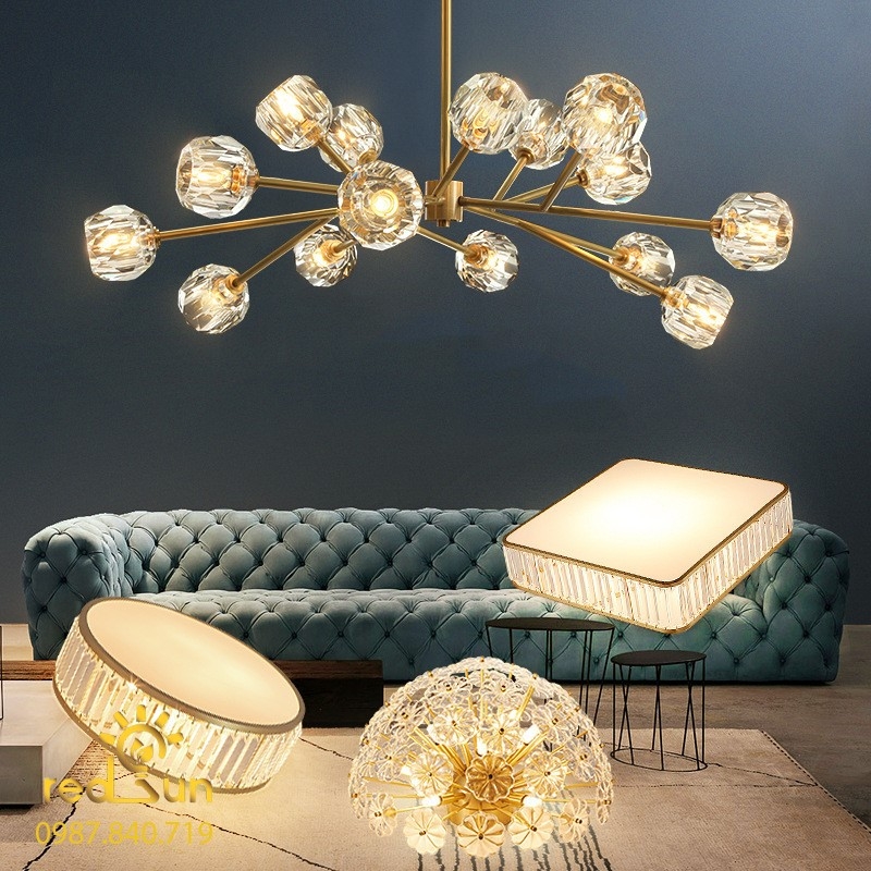 - Chất liệu: Khung hợp kim sơn tĩnh điện, chóa pha lê