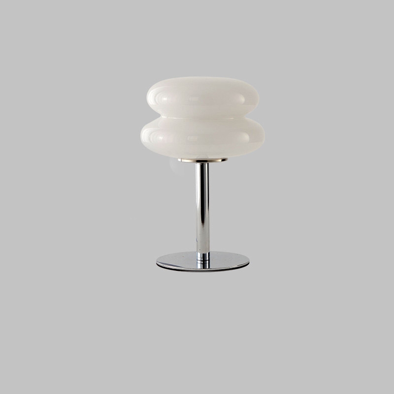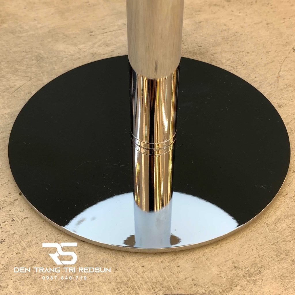 Đế và thân đèn: hợp kim tráng gương, chao đèn thuỷ tinh màu trắng hoặc caramel
