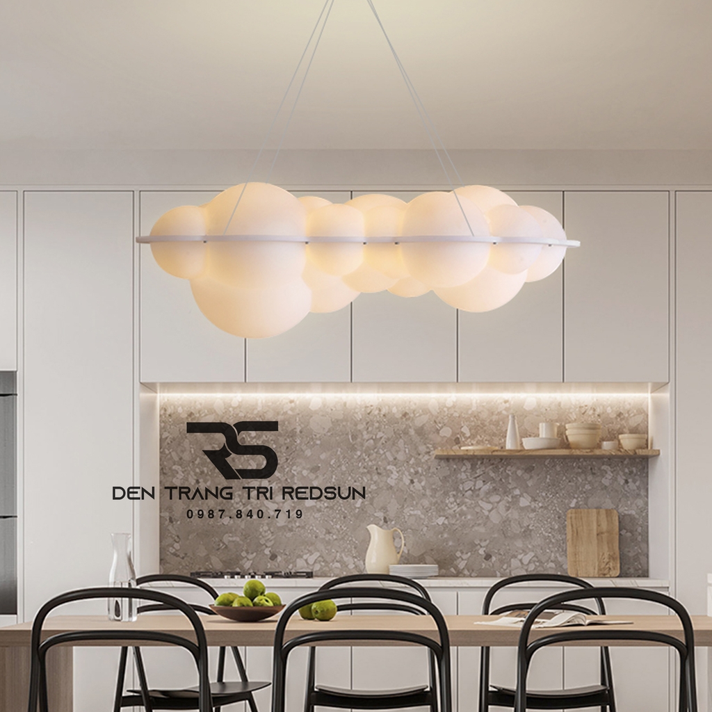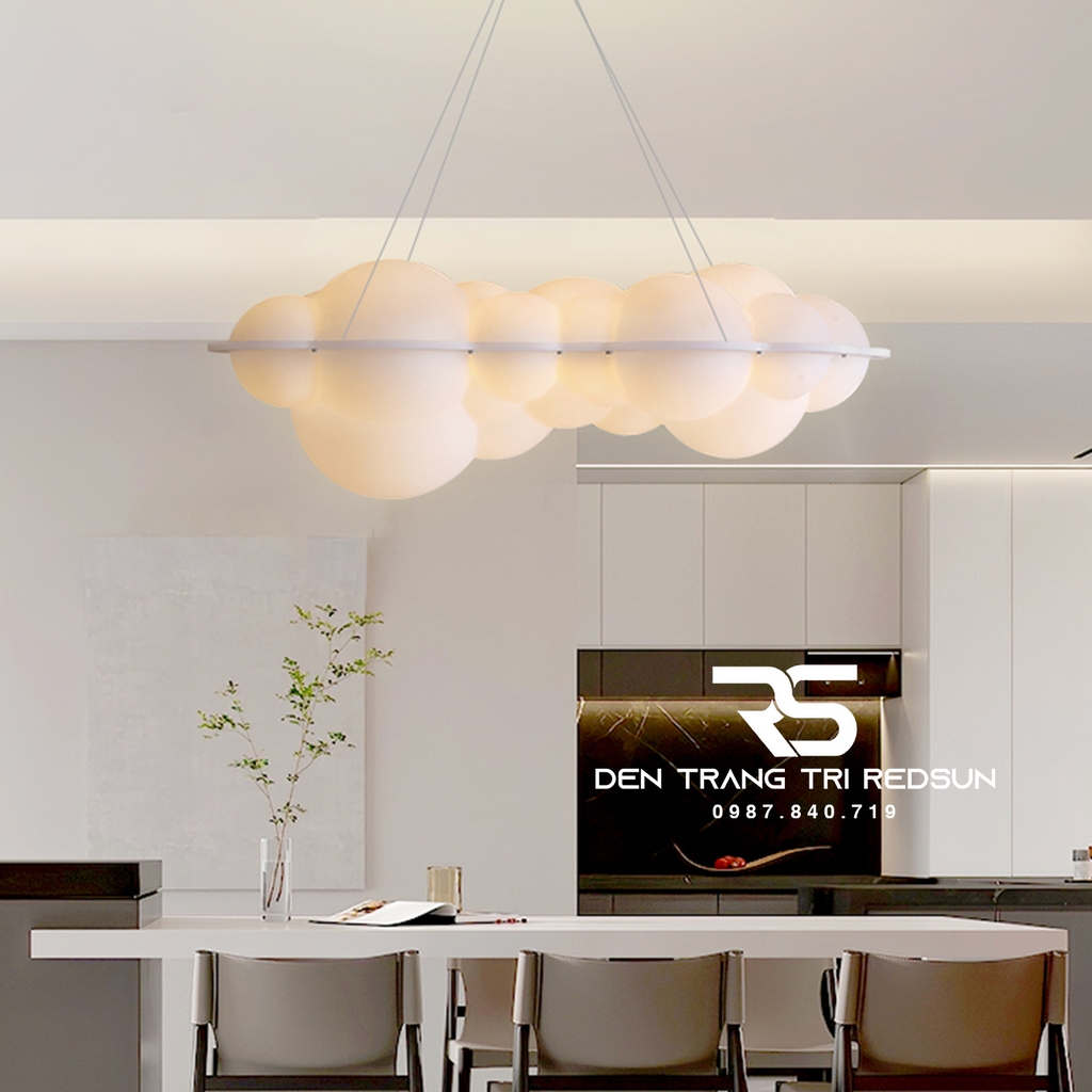 Đèn Chùm Đám Mây Phong Cách Bắc Âu Lắp Phòng Khách Hiện Đại DC-T114 tựa như một đám mây trắng trôi bồng bềnh phiêu lãng trong không gian, vừa mang lại cảm giác tự do tự tại, vừa tạo nên điểm nhấn nghệ thuật cho căn phòng. Đèn được làm từ chất liệu nhựa PVC có độ bền cao và hạn chế bám bụi, giúp việc vệ sinh dễ dàng. Sản phẩm có nhiều kích thước khác nhau, phù hợp với mọi không gian từ khiêm tốn đến rộng rãi.