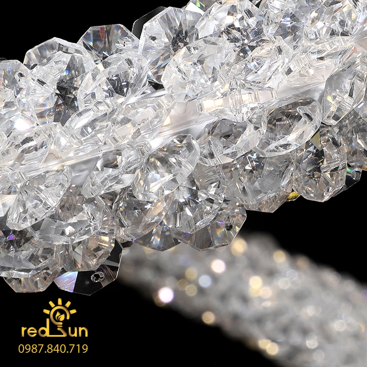 Đèn chùm pha lê là loại đèn được đính bởi nhiều hạt pha lê cao cấp tinh xảo với sự phản chiếu của những viên pha lê, tạo ra rất nhiều kiểu ánh sáng lấp lánh, tạo cho không gian nội thất phòng khách thêm sang trọng.