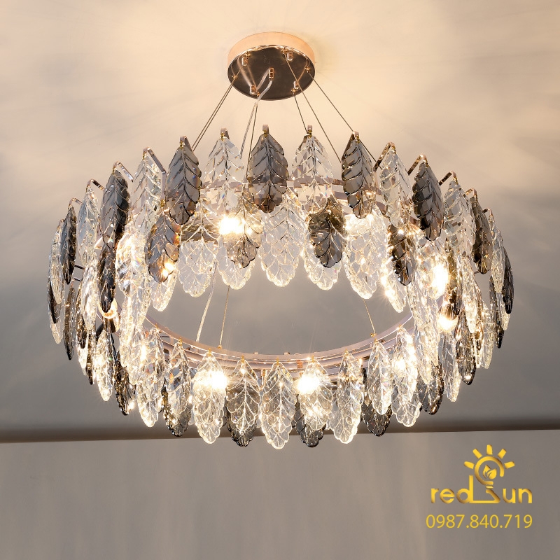 Đèn chùm pha lê là loại đèn được đính bởi nhiều hạt pha lê cao cấp tinh xảo với sự phản chiếu của những viên pha lê, tạo ra rất nhiều kiểu ánh sáng lấp lánh, tạo cho không gian nội thất phòng khách thêm sang trọng.