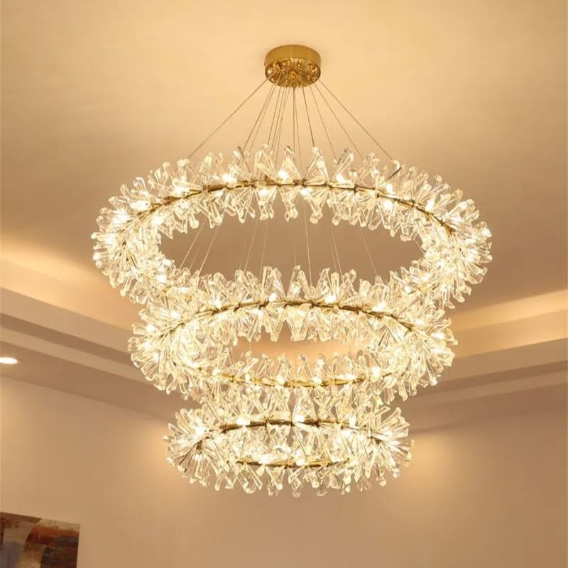 Mẫu Đèn Chùm Pha Lê Vương Miện DC-L050 lấy cảm hứng từ những bông tuyết đan xen. Kết hợp với bàn tay tinh tế và sự khéo léo, các nhà thiết kế đã thổi hồn tạo nên điểm độc đáo cho mẫu đèn. Những viên pha lê được gọt giũa tinh tế sắc bén kết hợp với ánh sáng vàng của bóng đèn led khiến không gian như bừng sáng.
