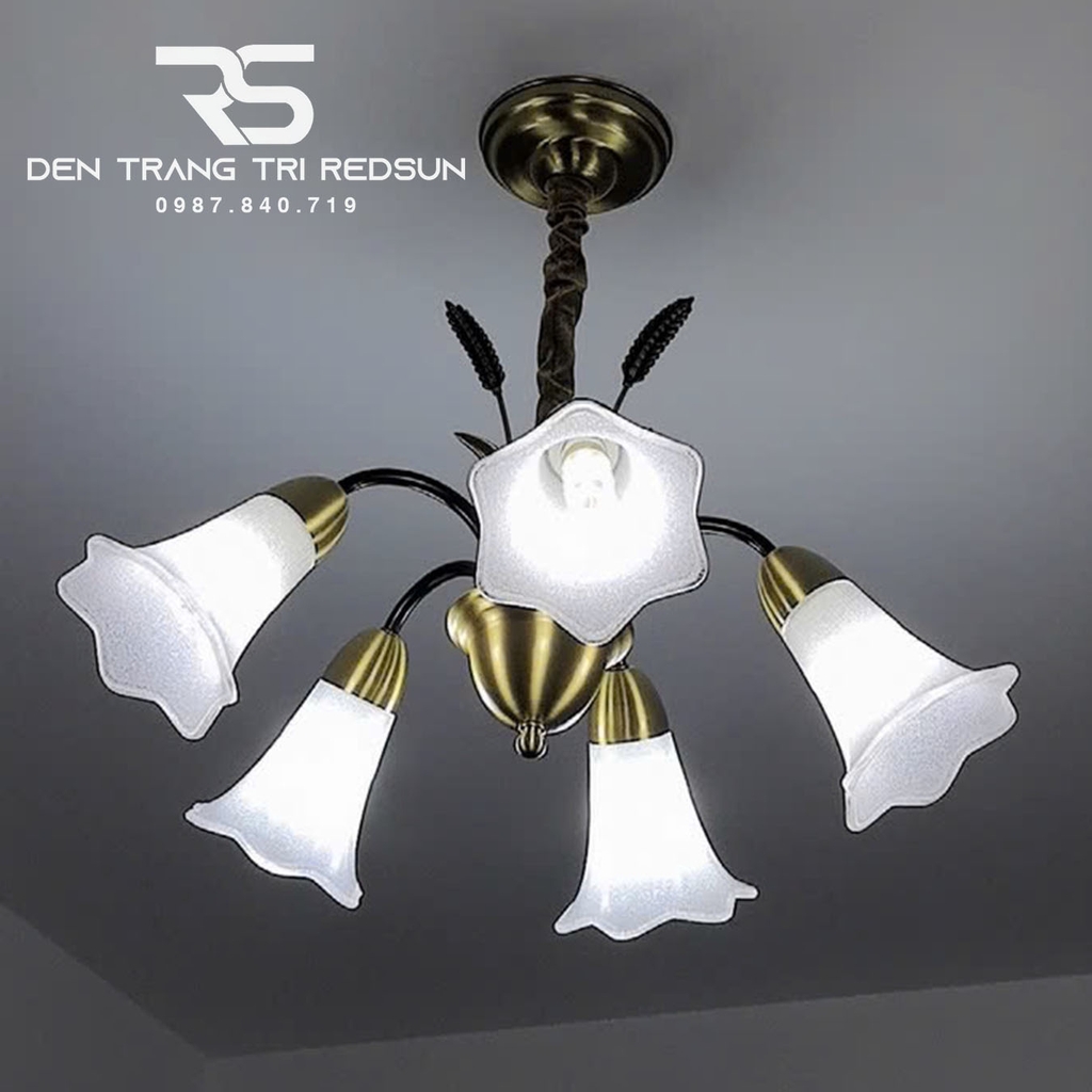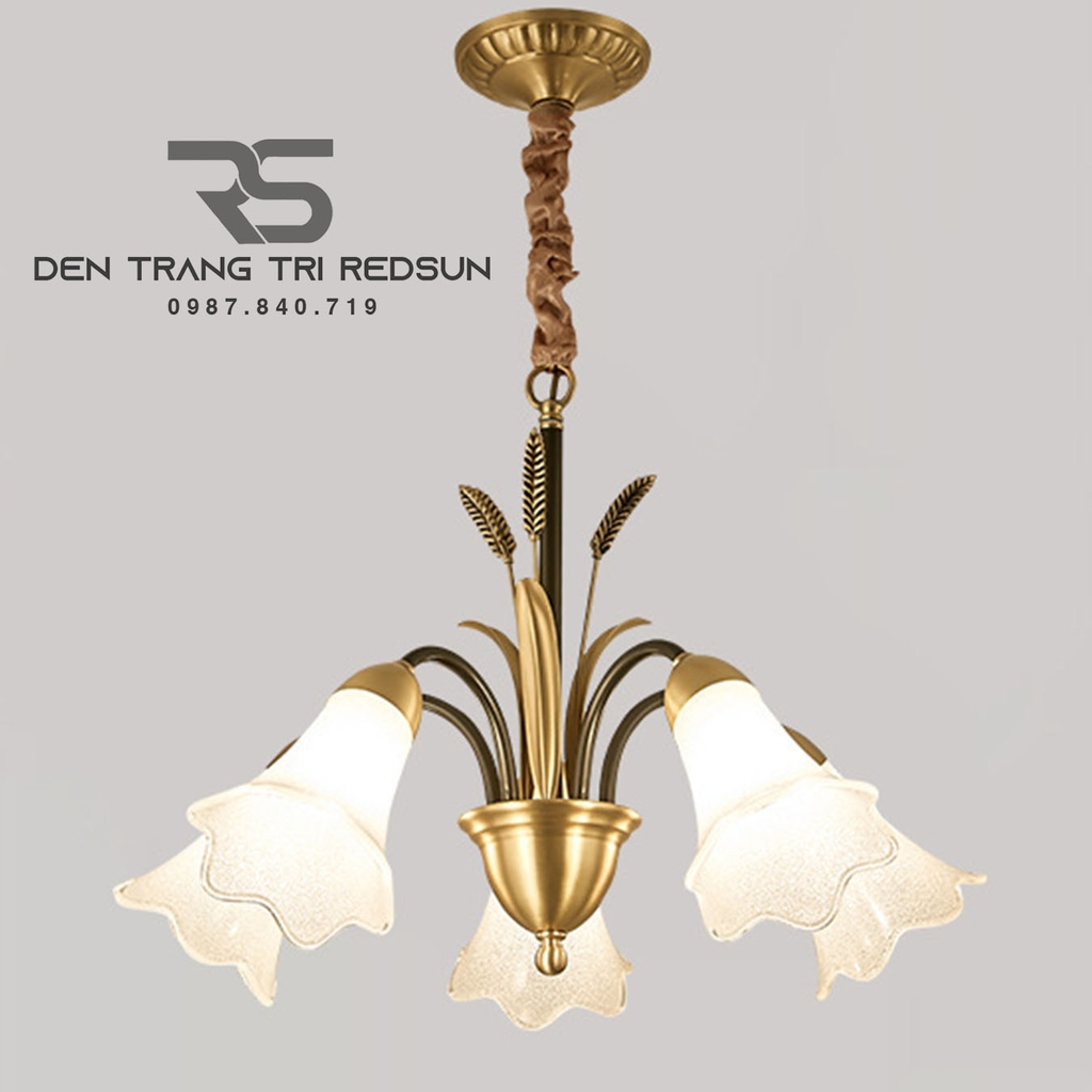 Khung đồng + hợp kim sơn tĩnh điện, chao thuỷ tinh