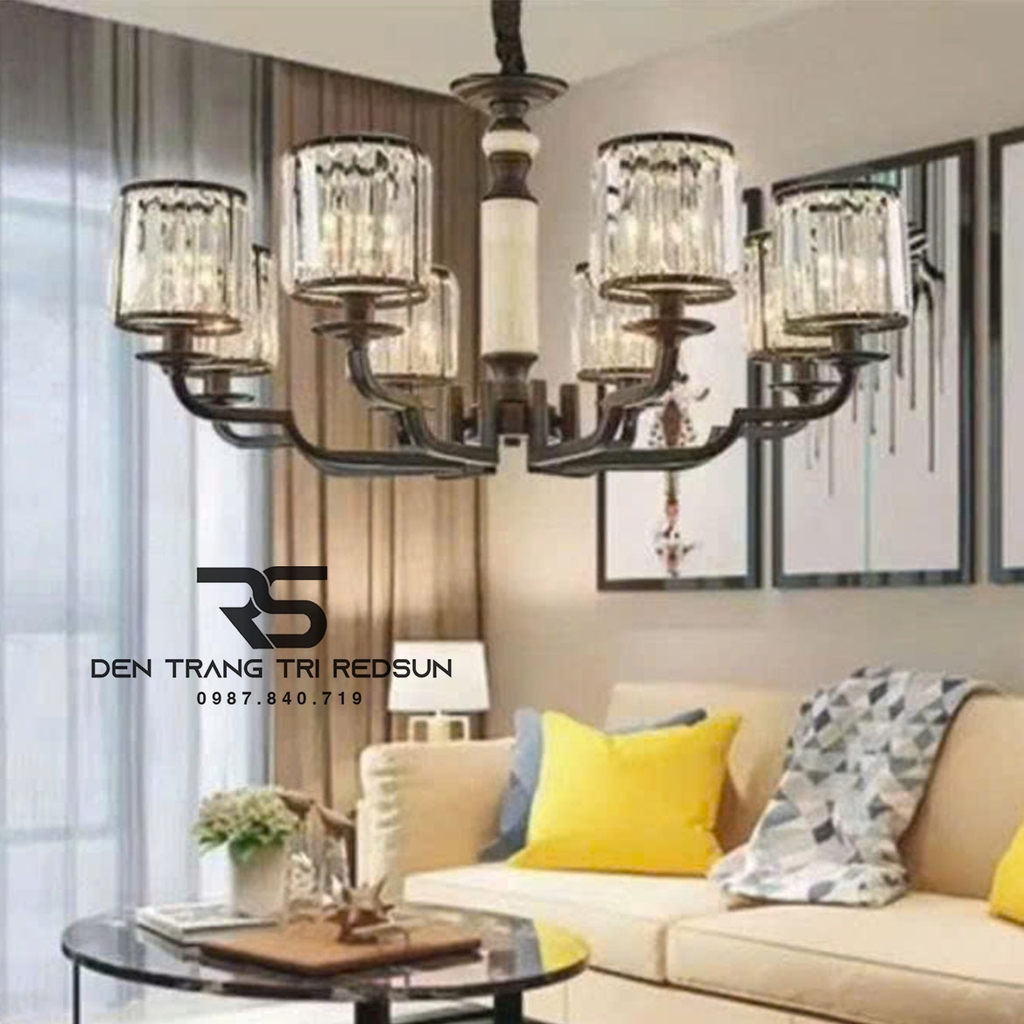 Đèn Chùm Phòng Khách Phong Cách Indochine IDC-C9962 là sự kết hợp giữa vẻ sang trọng cổ điển và nét cá tính hiện đại. Điểm nhấn lớn nhất của bộ đèn chính là phần khung đèn hợp kim sơn tĩnh điện màu đen mờ kết hợp với chao đèn pha lê trong suốt. Sự đối lập này tạo nên vẻ đẹp vừa mạnh mẽ vừa tinh tế. Các tay đèn được thiết kế theo dạng đường thẳng gấp khúc vuông vức, mang lại cảm giác hiện đại, vững chãi, đồng thời tỏa ra theo nhiều hướng giúp cung cấp nguồn sáng đồng đều và bao phủ diện tích rộng. Các chao đèn bằng pha lê giúp tán sắc ánh sáng lung linh hơn, tạo hiệu ứng tia sáng đẹp mắt lên tường và trần nhà. IDC-C9962 cực kỳ phù hợp với những gia chủ thích sự phá cách, hiện đại nhưng vẫn muốn giữ lại nét sang trọng.