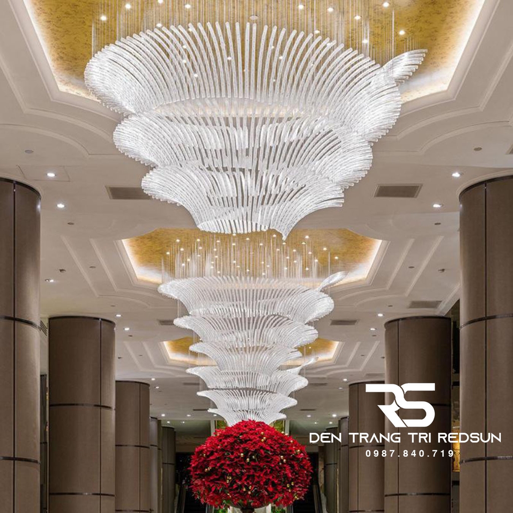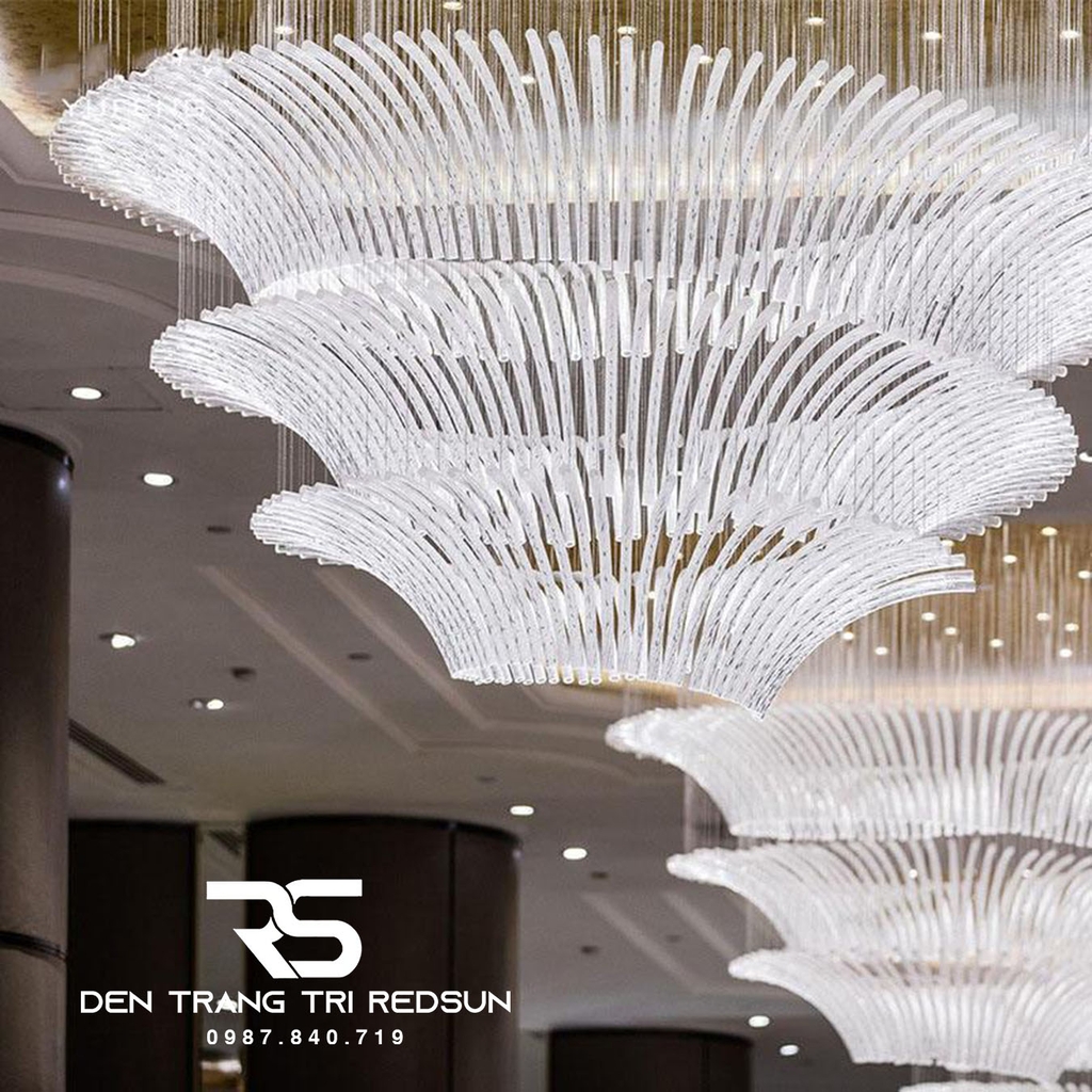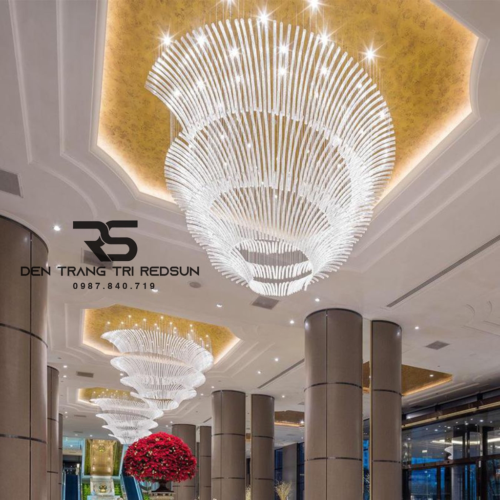 Với những không gian lớn, sang trọng như đại sảnh khách sạn, nhà hàng cao cấp, một bộ đèn không chỉ cung cấp ánh sáng mà còn là một phần của kiến trúc tổng thể, giúp hoàn thiện ý tưởng thiết kế, tạo nên phong cách riêng biệt cho toàn bộ công trình, và đặc biệt là điểm nhấn nghệ thuật thu hút sự chú ý, mang lại những trải nghiệm ấn tượng cho khách hàng. Vì những lý do này, việc chọn đèn trang trí sảnh nhà hàng, khách sạn là vô cùng quan trọng. Đèn Chùm Sảnh Khách Sạn, Nhà Hàng, Phòng Tiệc Cao Cấp Phong Cách Hiện Đại Chất Liệu Thủy Tinh HTK-NK003 là mẫu đèn đáp ứng được tất cả các tiêu chí nêu trên.