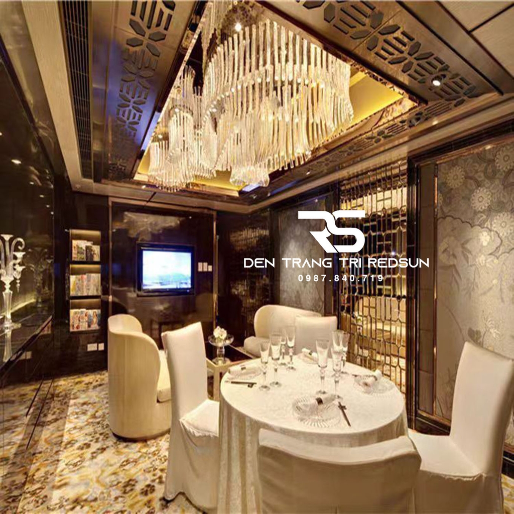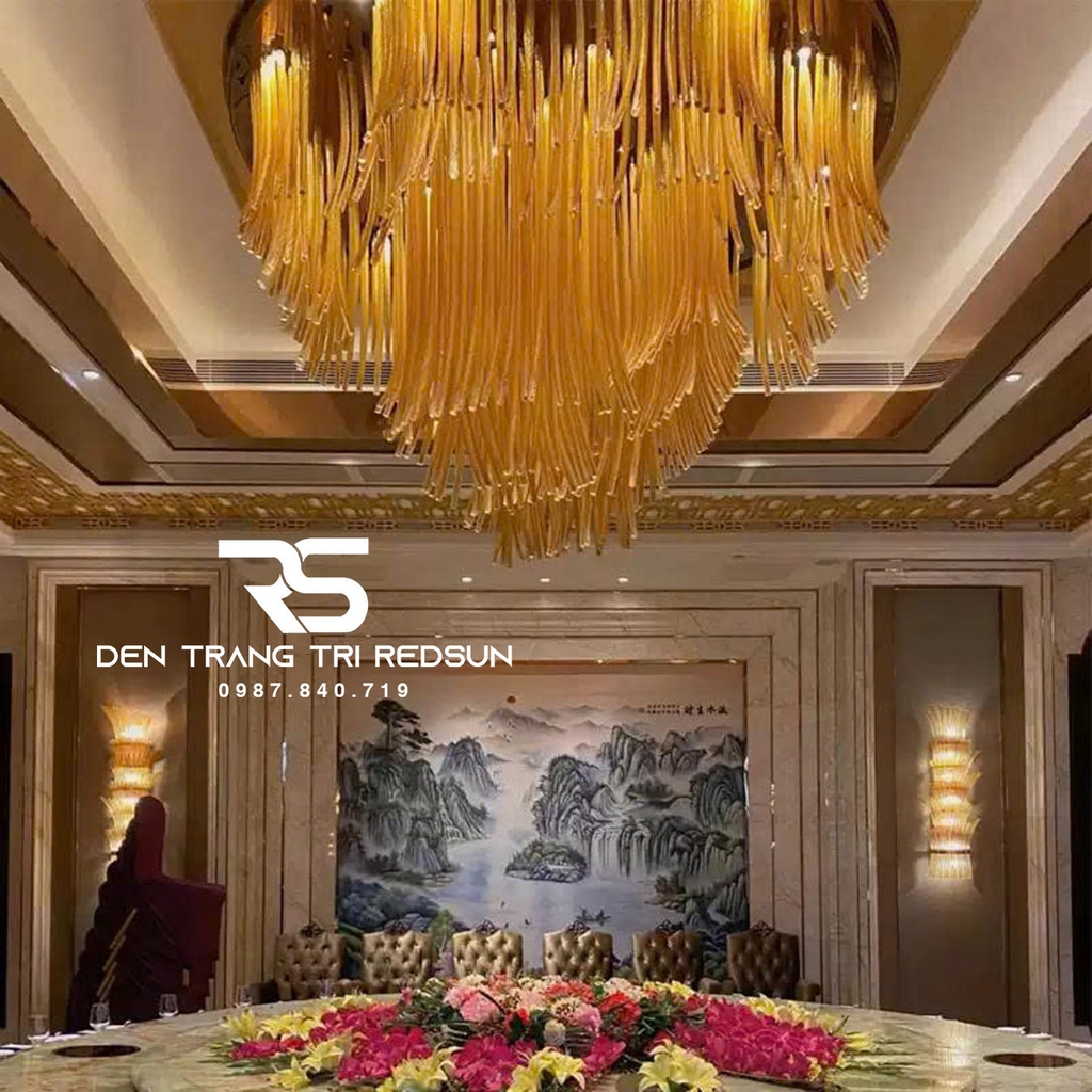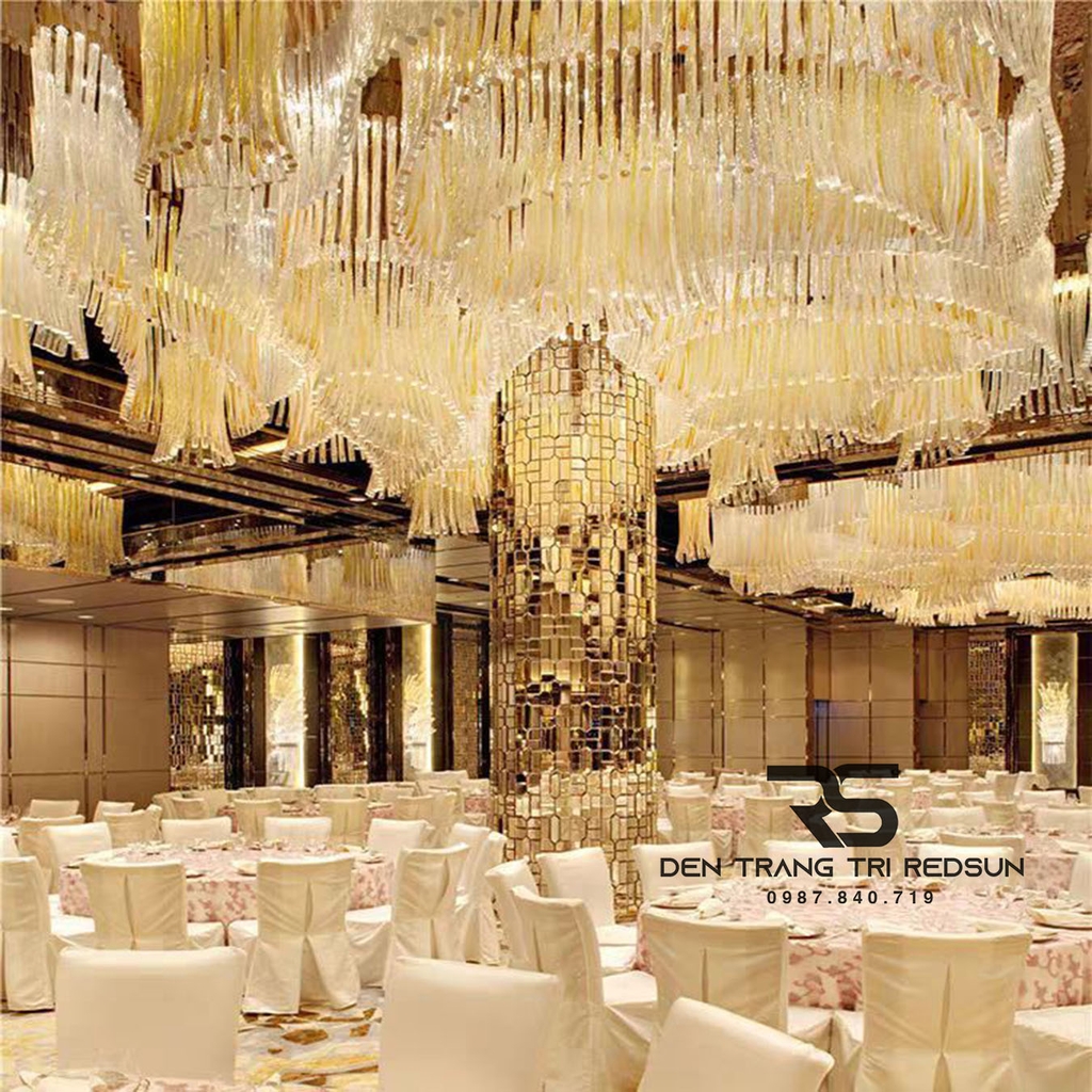 Với những không gian lớn, sang trọng như đại sảnh khách sạn, nhà hàng cao cấp, một bộ đèn không chỉ cung cấp ánh sáng mà còn là một phần của kiến trúc tổng thể, giúp hoàn thiện ý tưởng thiết kế, tạo nên phong cách riêng biệt cho toàn bộ công trình, và đặc biệt là điểm nhấn nghệ thuật thu hút sự chú ý, mang lại những trải nghiệm ấn tượng cho khách hàng. Vì những lý do này, việc chọn đèn trang trí sảnh nhà hàng, khách sạn là vô cùng quan trọng. Đèn Chùm Sảnh Khách Sạn, Nhà Hàng, Phòng Tiệc Cao Cấp Phong Cách Hiện Đại Chất Liệu Thủy Tinh HTK-NK003 là mẫu đèn đáp ứng được tất cả các tiêu chí nêu trên.
