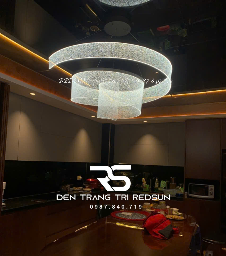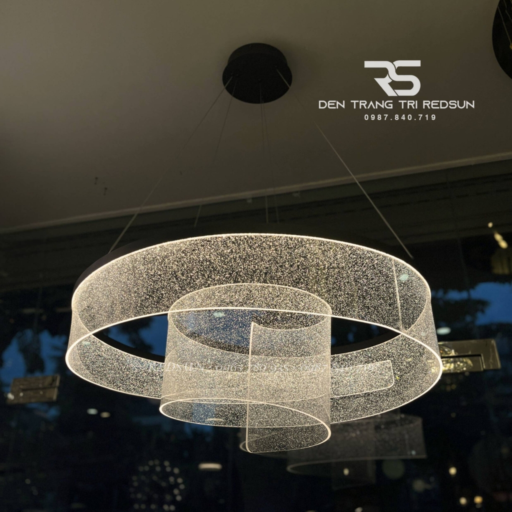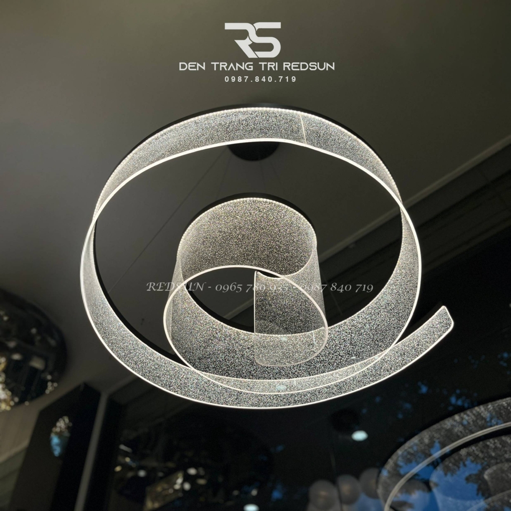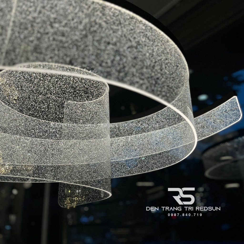 Được chế tác từ acrylic cao cấp, bề mặt đèn phản chiếu ánh sáng, mang lại cảm giác sang trọng nhưng vẫn giữ được sự nhẹ nhàng, thanh thoát. Chất liệu này không chỉ mang lại độ bền cao, dễ vệ sinh mà còn giúp ánh sáng tỏa đều và dịu mắt. Điểm đặc biệt khiến bộ đèn này chinh phục mọi tín đồ yêu ánh sáng nằm ở bộ điều khiển thông minh tích hợp dimmer. Chỉ với một thao tác điều khiển, khách hàng có thể tăng giảm cường độ ánh sáng theo ý muốn, hoặc thay đổi linh hoạt nhiệt độ màu từ trắng sáng, vàng ấm, cho đến trung tính. Đèn chùm dải lụa dáng xoắn hứa hẹn là sự lựa chọn hoàn hảo cho những ai yêu thích vẻ đẹp hiện đại, tinh tế và khác biệt.