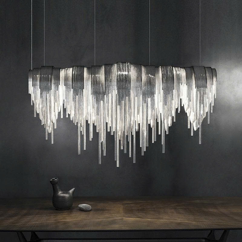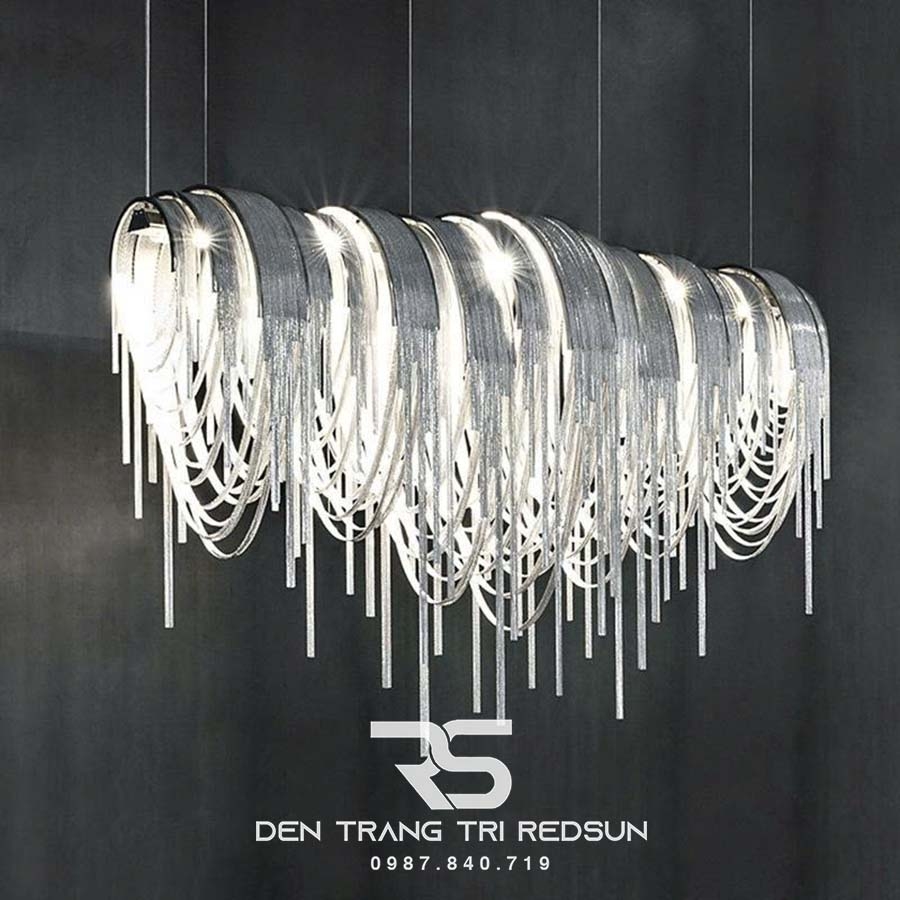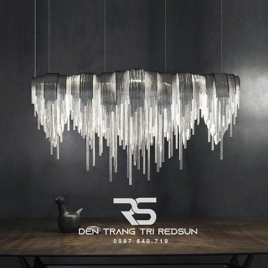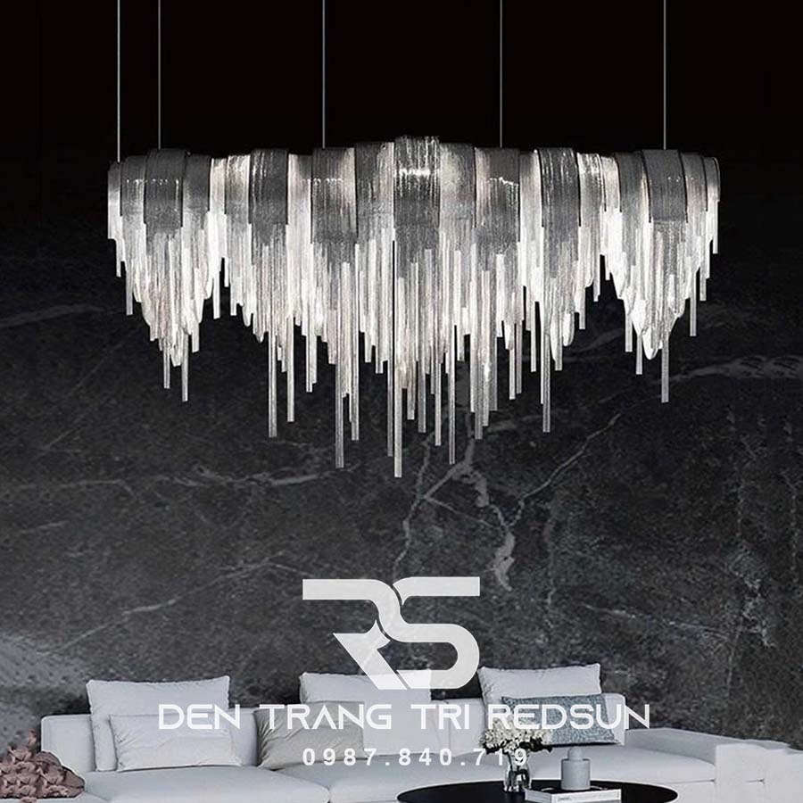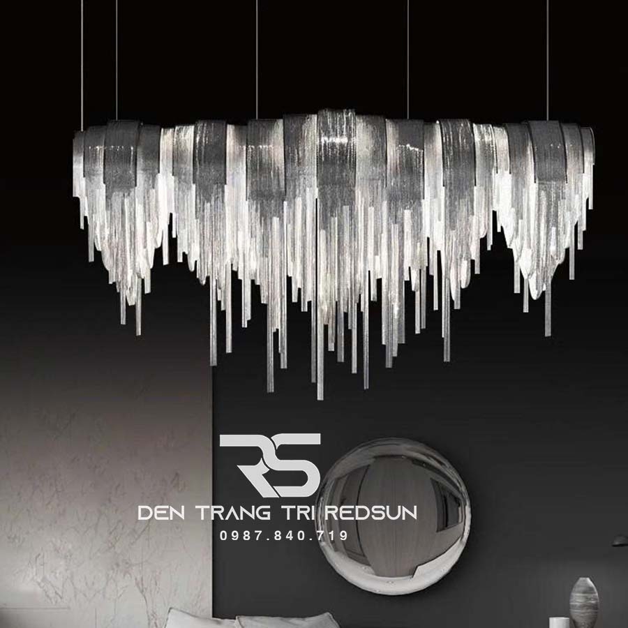 Mang cảm hứng từ những dải lụa mềm mại chuyển động trong không trung, Đèn Chùm Trang Trí Sảnh Chờ, Phòng Khách, Phòng Ăn Hình Tua Rua Phong Cách Italia DCP-015 là sự kết hợp hoàn hảo giữa tính thẩm mỹ hiện đại và sự phá cách đầy cuốn hút. Tựa như một vũ khúc ánh sáng lơ lửng giữa không trung, DCP-015 là sự kết tinh hoàn mỹ giữa nghệ thuật đương đại và vẻ đẹp hình khối uyển chuyển với những chuỗi tua rua kim loại thanh mảnh rủ xuống mềm mại như những cơn mưa ánh sáng, phản chiếu từng tia đèn LED vàng ấm một cách tinh tế, tạo nên không gian vừa ấm cúng, vừa lộng lẫy như một bức tranh sống động.