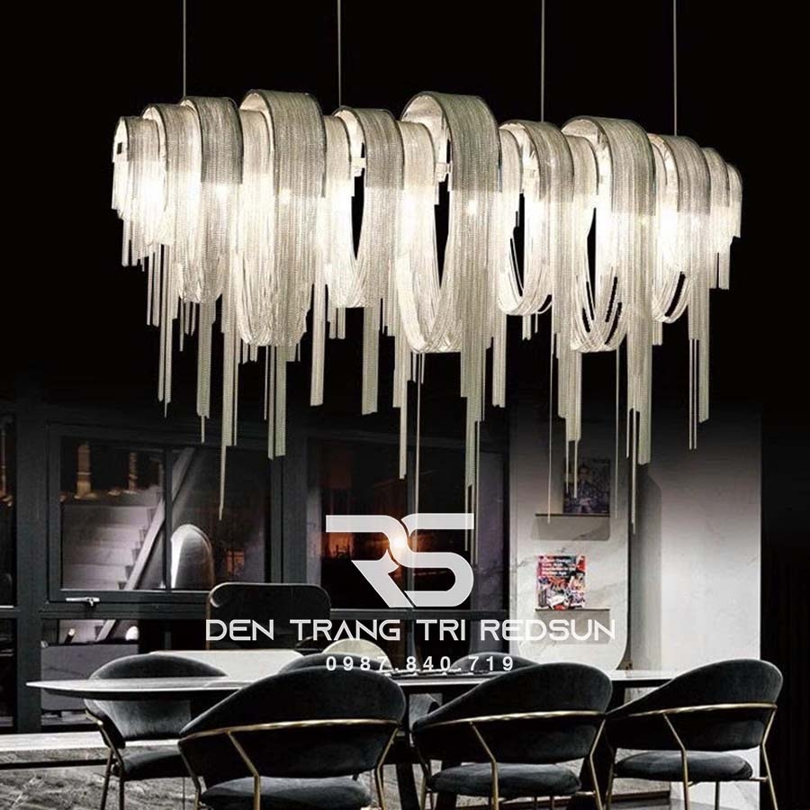 Đèn Chùm Trang Trí Sảnh Chờ, Phòng Khách, Phòng Ăn Hình Tua Rua Phong Cách Italia DCP-015 phù hợp với các không gian cần tạo điểm nhấn thị giác mạnh như: sảnh khách sạn, phòng khách cao cấp, khu vực quầy bar, nhà hàng sang trọng hoặc phòng ăn phong cách hiện đại. Sản phẩm không những là một nguồn sáng còn vừa là một tác phẩm nghệ thuật đương đại, tôn vinh sự tinh tế trong từng chi tiết nội thất.