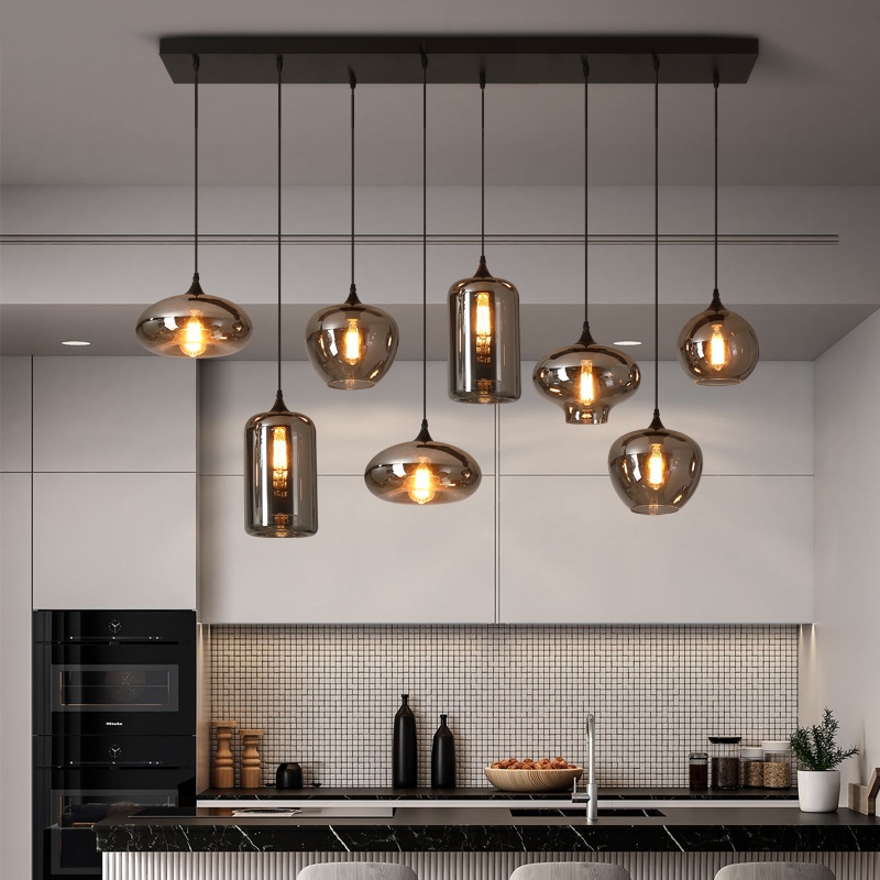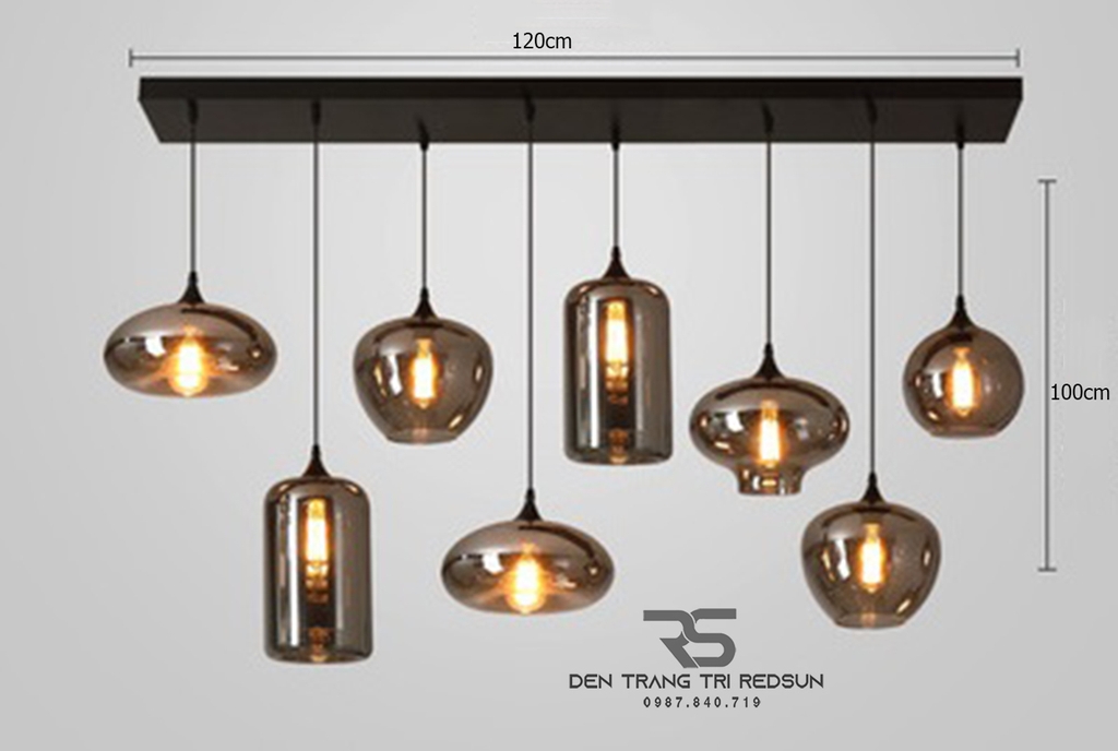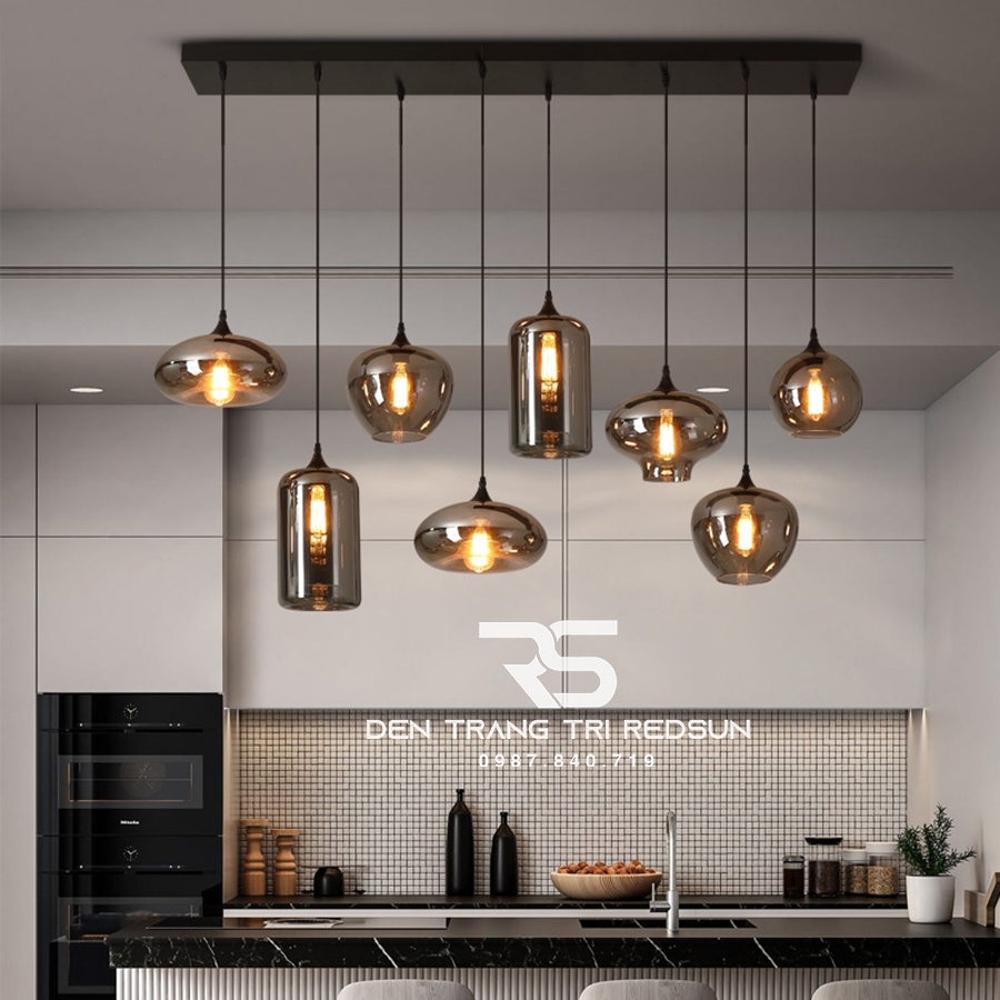 Đèn Thả Bàn Ăn Hiện Đại Bắc Âu Choá Thuỷ Tinh Đen Khói CDT-L014 Bộ 8 Thả có tính ứng dụng cao, phù hợp lắp cho nhiều không gian như thả bàn ăn, phòng bếp, nhà hàng,...