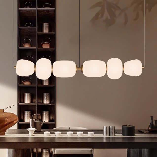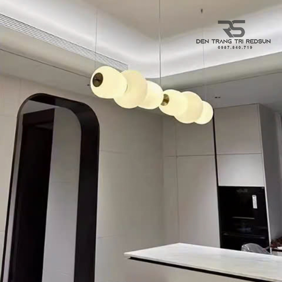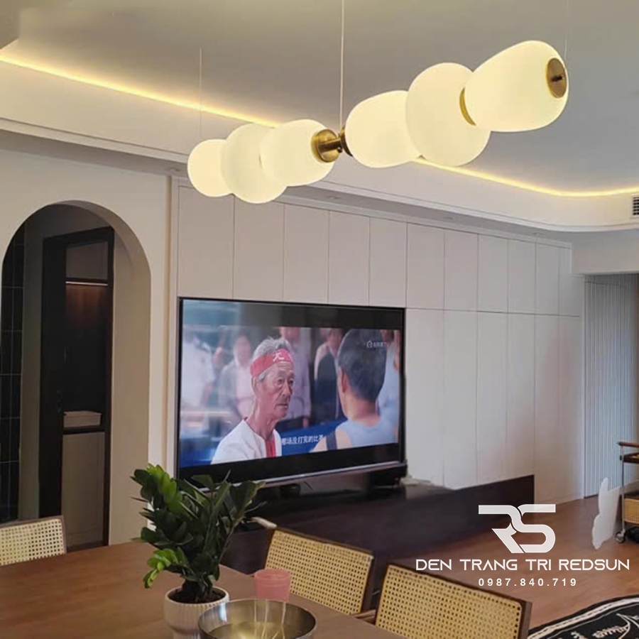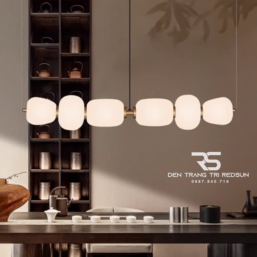 Đèn Thả Bàn Ăn Hiện Đại Phong Cách Bắc Âu Dáng Dài DC-T097 mang phong cách hiện đại nhưng vẫn phảng phất nét đẹp truyền thống nhờ vào thiết kế lấy cảm hứng từ hình dáng hồ lô – một biểu tượng của sự may mắn và trường thọ trong văn hóa Á Đông. Những trái hồ lô tròn trịa, kết nối với nhau theo một trục ngang, mang đến sự đối xứng hoàn mỹ và vẻ đẹp trang nhã. Ánh sáng từ đèn không chỉ cung cấp nguồn sáng dễ chịu mà còn lan tỏa sự thư thái, giúp không gian trở nên thân thiện và gần gũi.