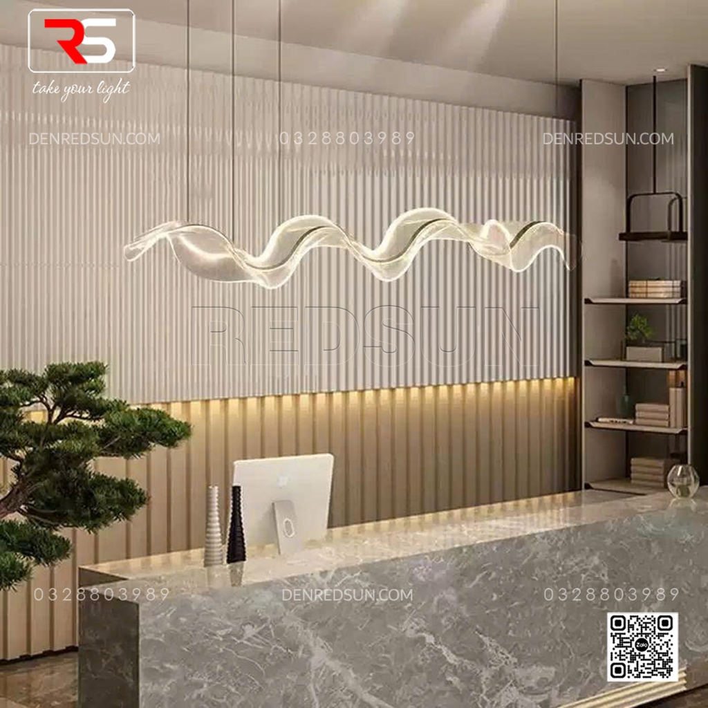 Đèn Thả Dải Lụa Cao Cấp Lắp Bàn Ăn, Bàn Đảo, Quầy Lễ Tân Phong Cách Bắc Âu Hiện Đại Chất Liệu Acrylic MK5890P-001-DZ-01-2.4 mang tính ứng dụng cao, được sử dụng trong các không gian nội thất như: bàn ăn, bàn đảo, quầy bar, quầy lễ tân khách sạn, nhà hàng, spa, văn phòng, v.v. đem đến vẻ đẹp tinh tế và trang nhã.