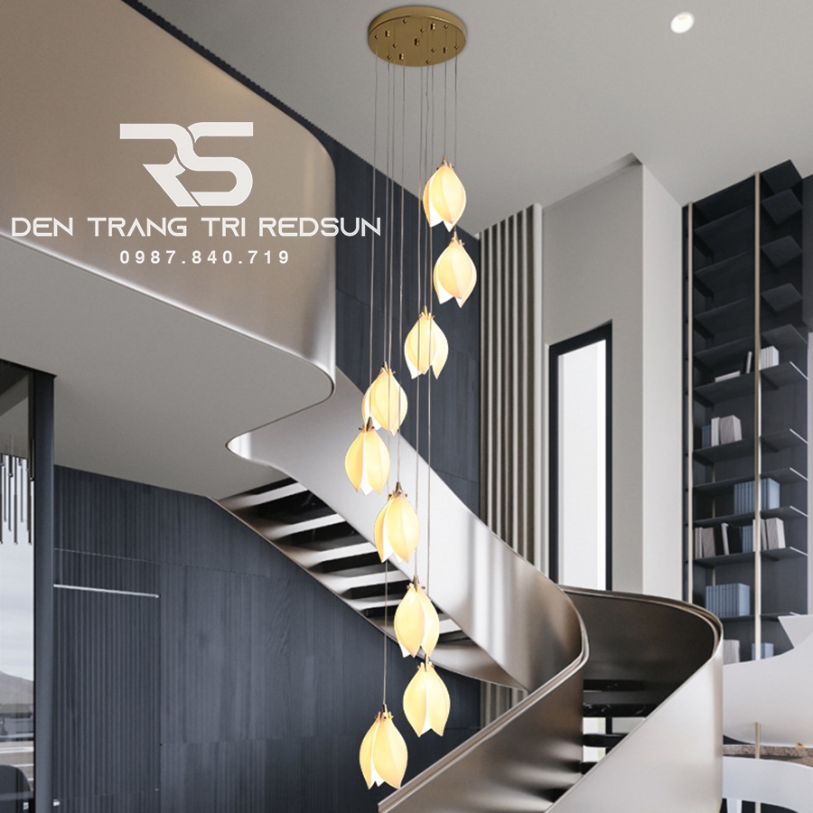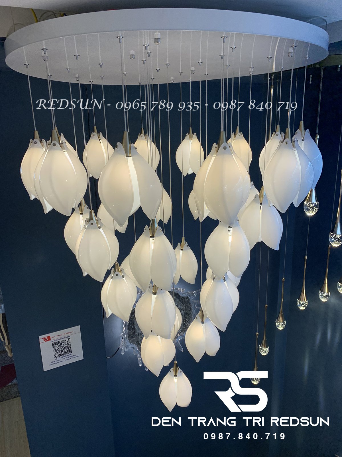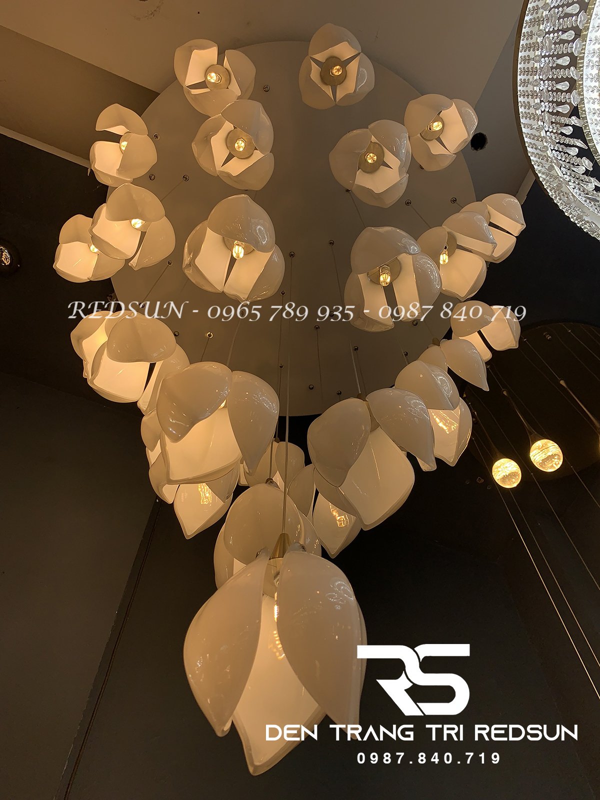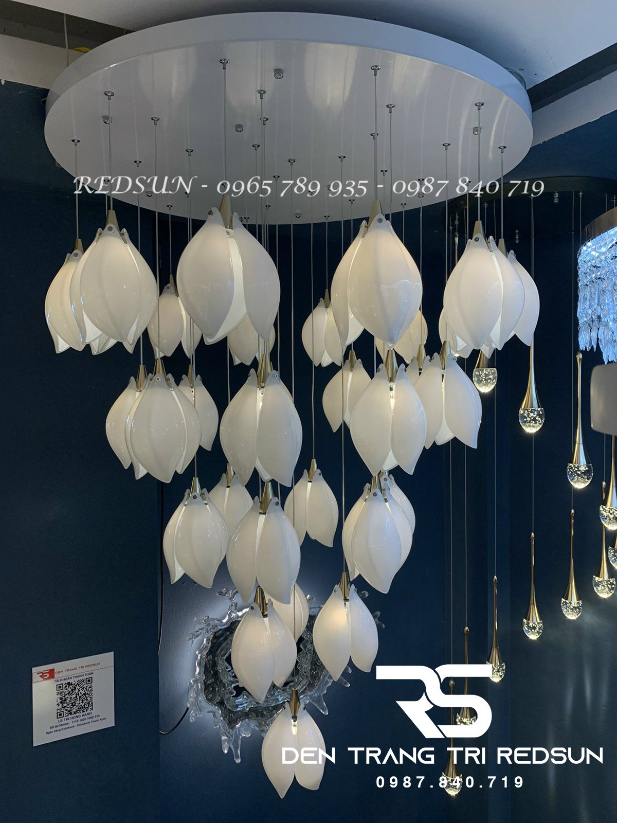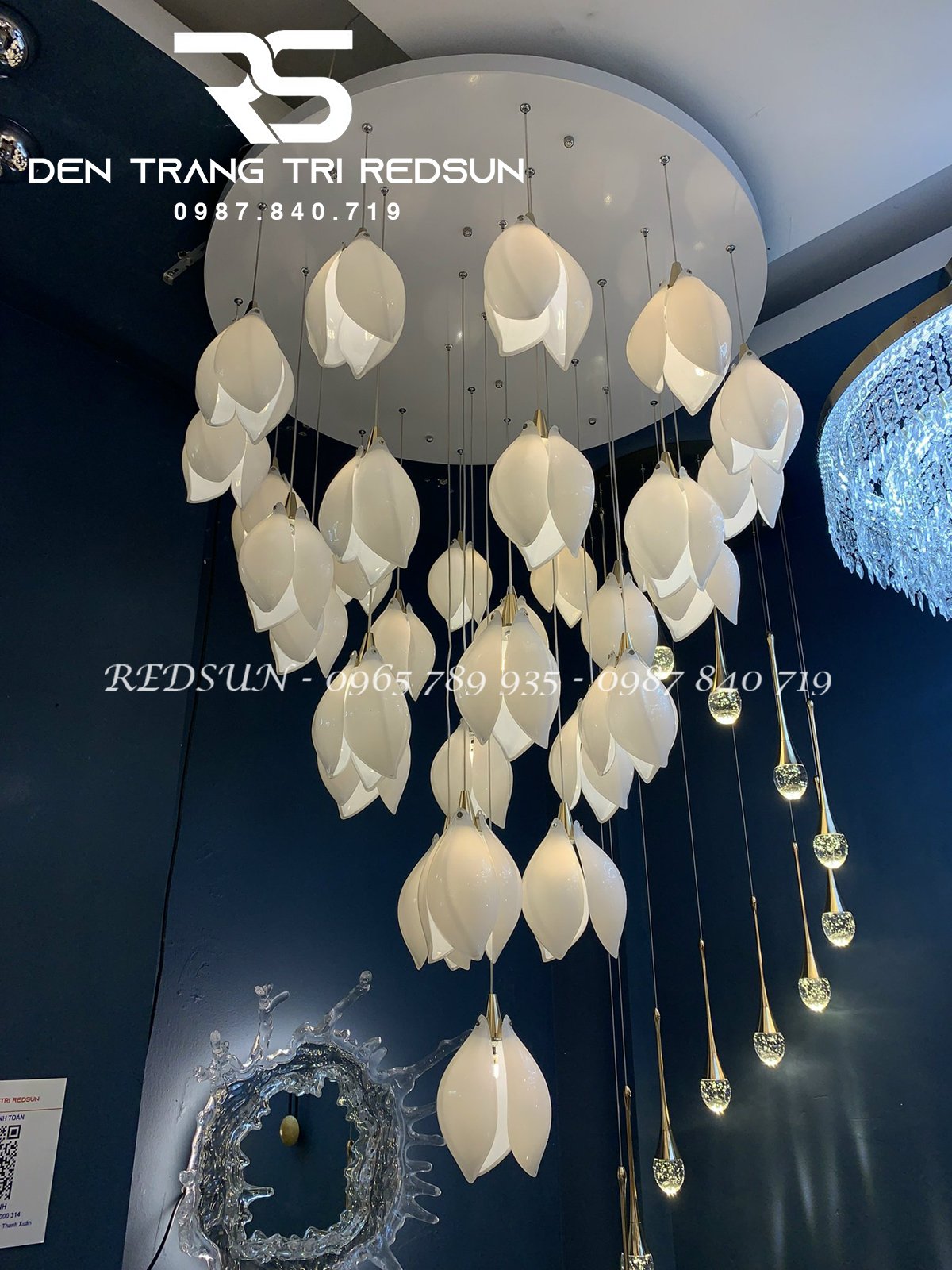 3. ĐỊA CHỈ MUA ĐÈN THẢ PHONG CÁCH HIỆN ĐẠI HOA MỘC LAN LẮP PHÒNG KHÁCH, SẢNH CHỜ, CẦU THANG THÔNG TẦNG HTK052