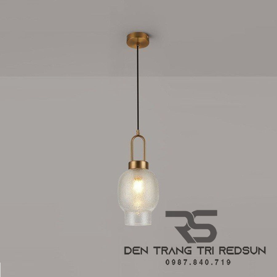 Đèn Thả Phòng Khách, Phòng Ngủ, Bàn Ăn Hiện Đại Bắc Âu Choá Thuỷ Tinh CDT-T048 với thiết kế chóa thủy tinh cao cấp, với bề mặt thuỷ tinh sần nên khi bật đèn tạo thành một hiệu ứng ánh sáng độc đáo giống như ánh sáng mặt trời chiếu lấp ló. Khi bật đèn, ánh sáng phản chiếu qua lớp chao thuỷ tinh tạo nên cảm giác dịu nhẹ và nên thơ, giúp tạo không gian thư giãn và ấm áp trong căn phòng.