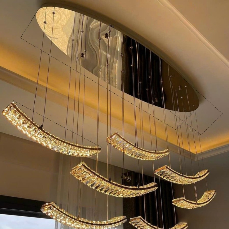 - Kích thước: Đế 30x120cm, chiều dài thanh pha lê cong 40cm, 7 thả, dây thả dài nhất 2m