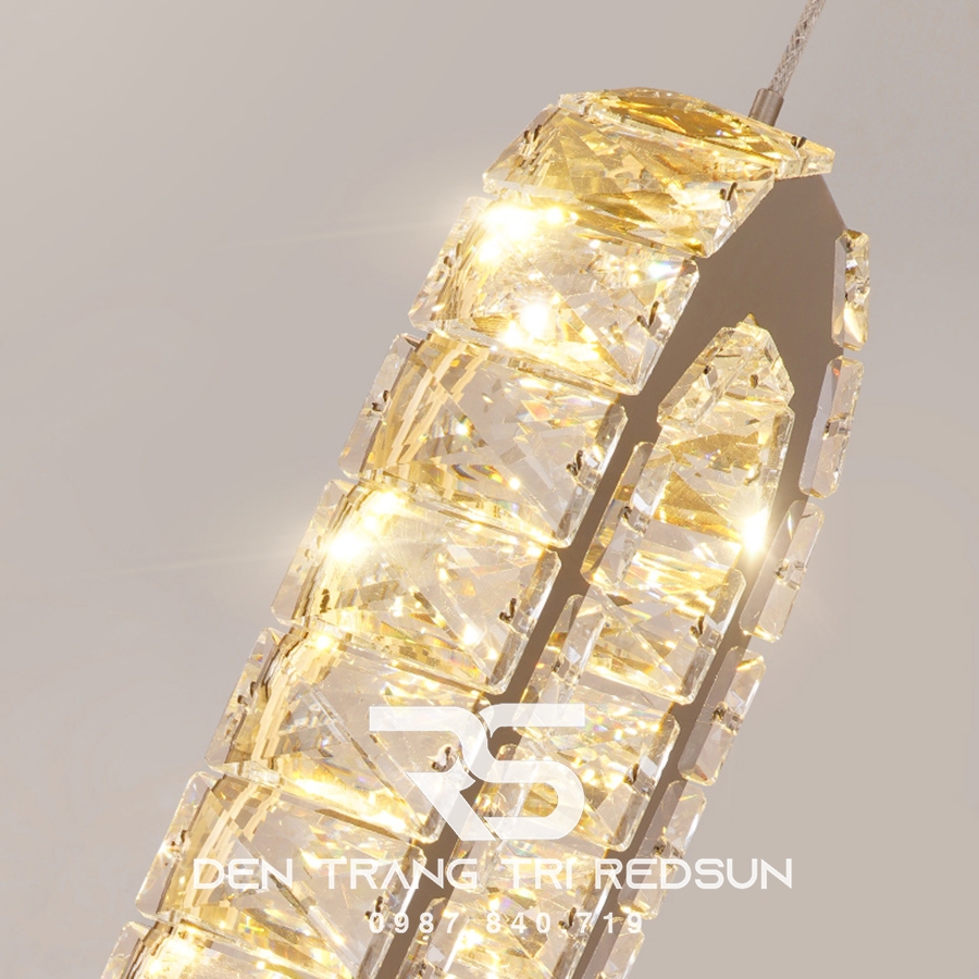 - Chất liệu: Đế inox tráng gương màu vàng/bạc/đen/vàng hồng, thả pha lê