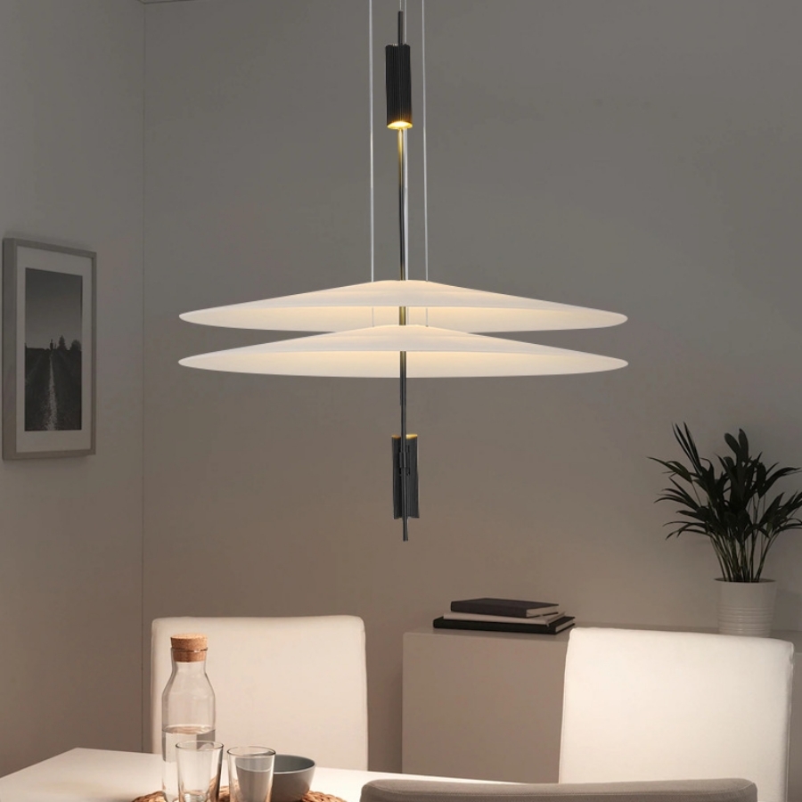 Đèn Thả Trần Hiện Đại Trang Trí Phòng Khách, Bàn Ăn, Phòng Ngủ Phong Cách Bắc Âu CDT-1026 mang phong cách hiện đại tối giản, với thiết kế hai tầng chao tròn mảnh mai. Bề mặt mica tán sáng nhẹ nhàng giúp ánh đèn lan tỏa đều, tạo cảm giác ấm áp và tinh tế cho không gian. Trục đèn đen tuyền mang đến điểm nhấn sang trọng, phù hợp cho các không gian nội thất đẳng cấp. CDT-1026 phù hợp với phòng khách, quầy bar, khu vực bàn ăn, sảnh tiếp khách hay không gian trưng bày nghệ thuật. Với kiểu dáng thanh thoát, ánh sáng dịu và khả năng phản chiếu đẹp mắt, CDT-1026 không chỉ là nguồn sáng mà còn là một món décor tinh tế, góp phần hoàn thiện vẻ đẹp hiện đại của ngôi nhà.