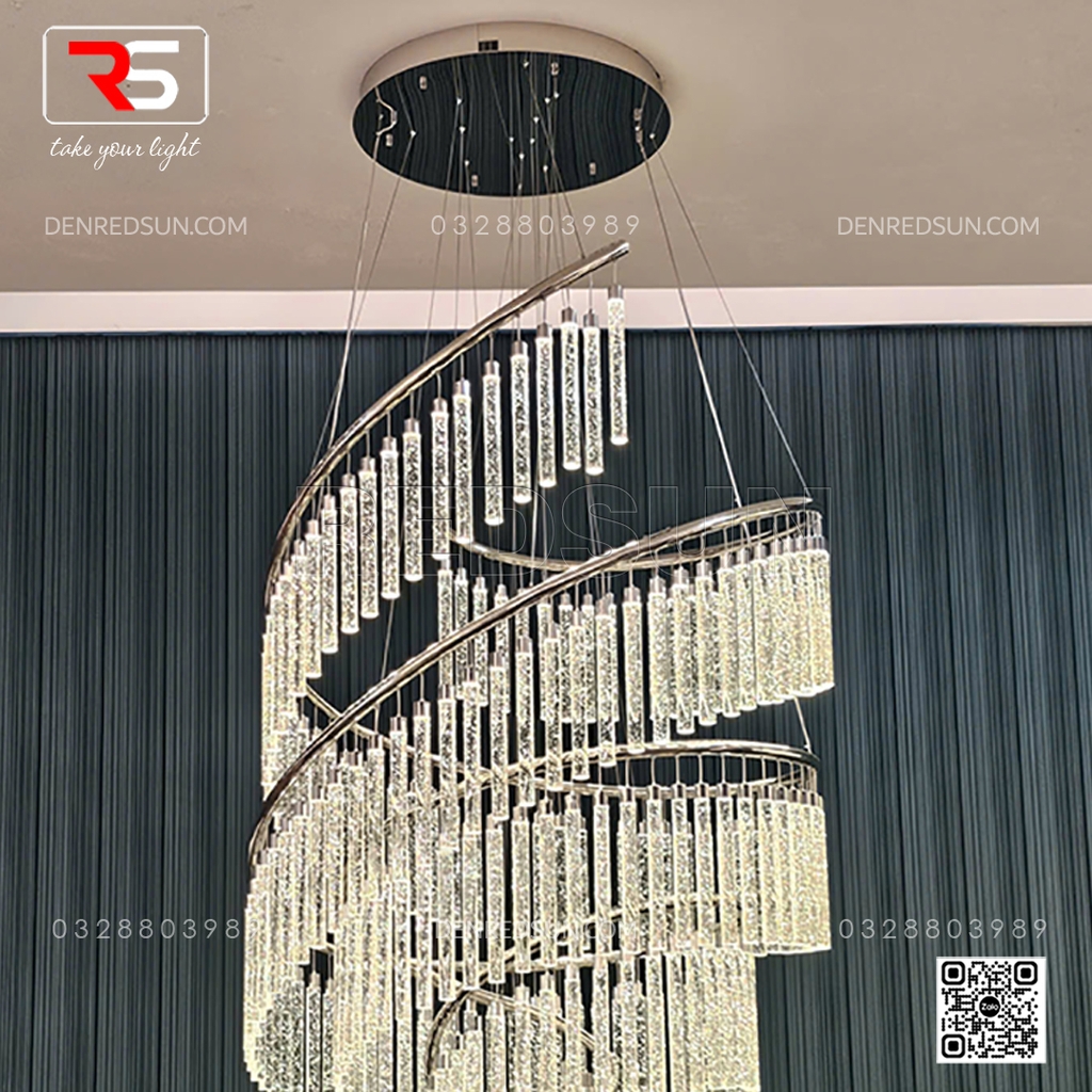 Đèn Thông Tầng Pha Lê Cao Cấp HTK-NKFZ008 sở hữu thiết kế hiện đại xoắn ốc tinh tế, lý tưởng cho các không gian sang trọng như sảnh khách sạn, tòa nhà cao cấp, showroom, phòng khách thông tầng Duplex, Penthouse hay biệt thự, khu vực phòng khách lớn hoặc phòng tiệc, phòng hội nghị, v.v. Đặc biệt, REDSUN cung cấp dịch vụ tư vấn và thi công lắp đặt chuyên nghiệp tận nơi Hà Nội cùng chính sách hỗ trợ linh hoạt cho khách hàng toàn quốc.