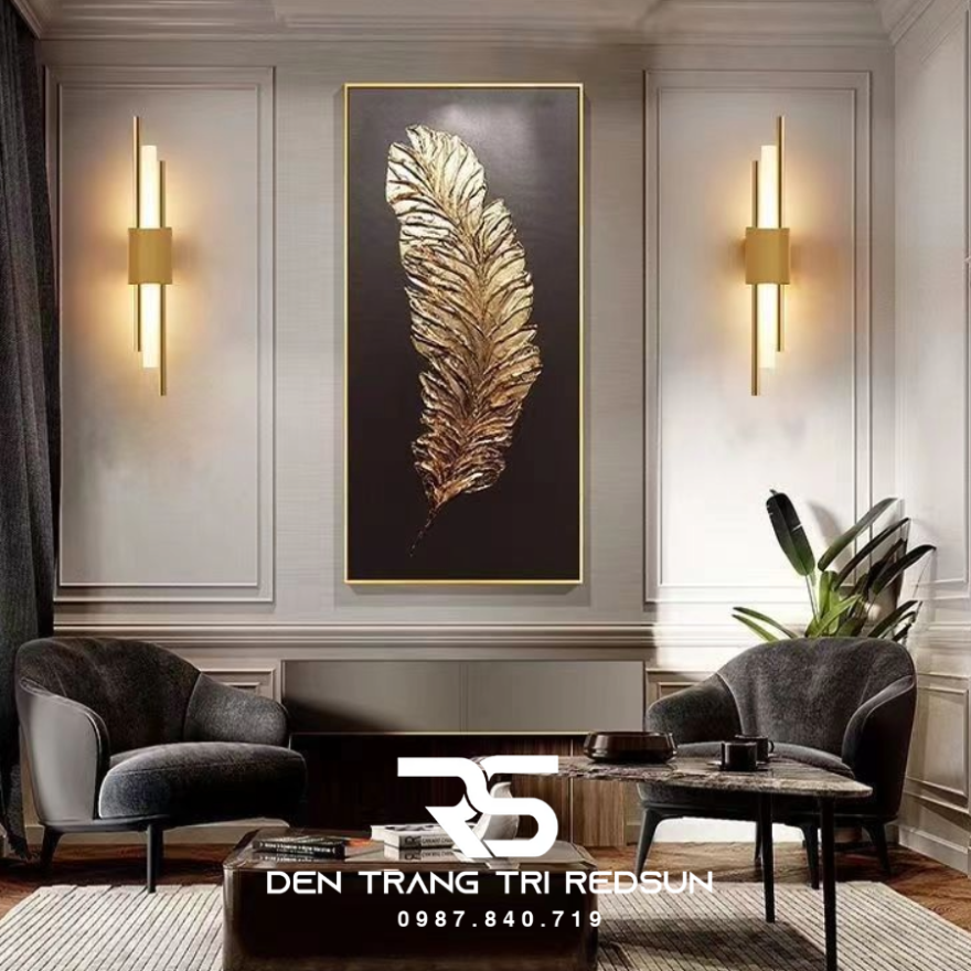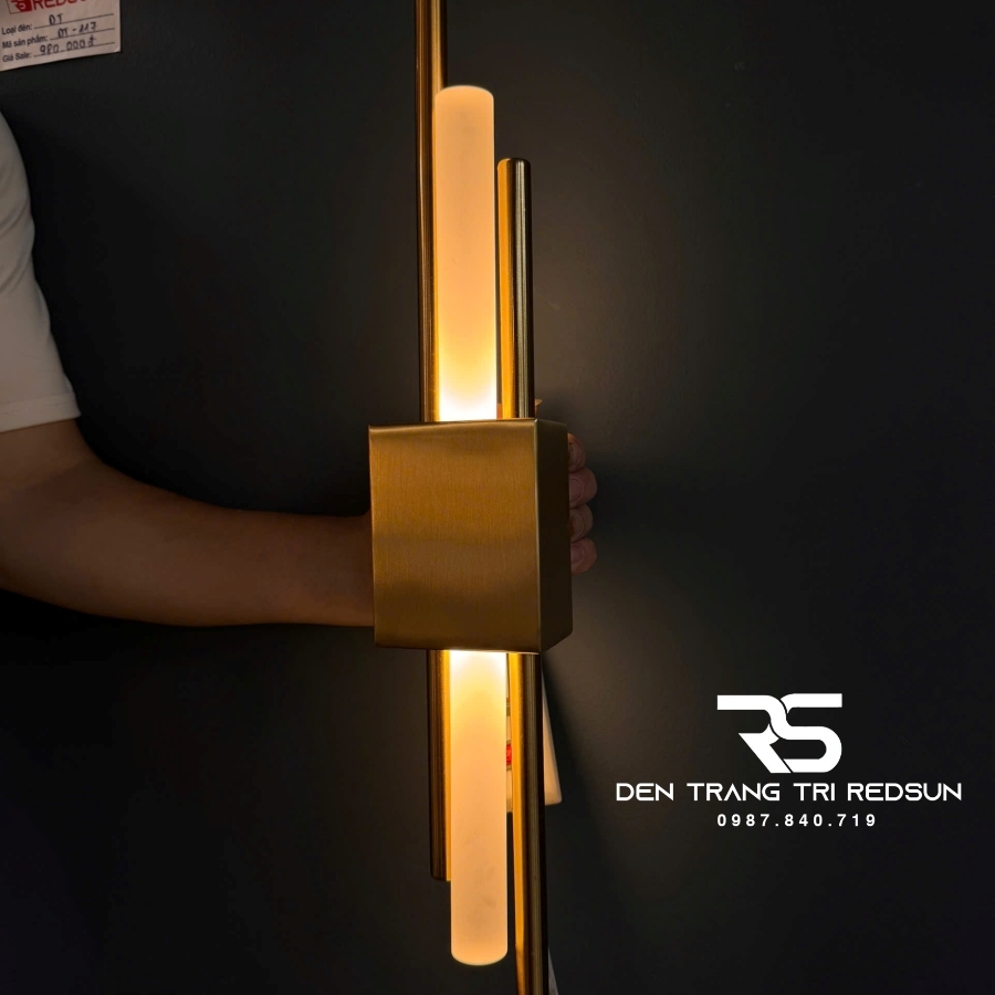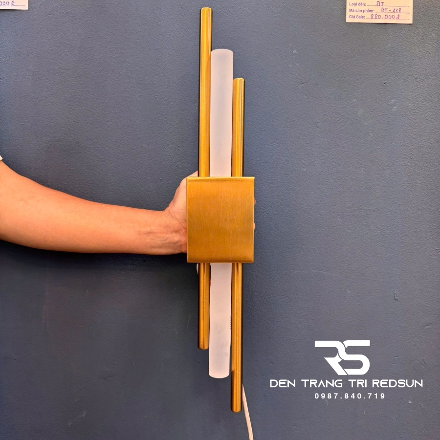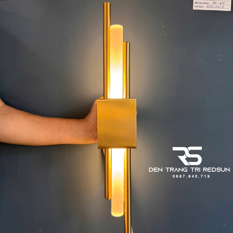 DT-1036 với thanh kim loại mạ vàng được sắp xếp một cách đối xứng, như những đường nét kiến trúc mạnh mẽ vươn lên cao, mang lại cảm giác thanh thoát và độc đáo. Phần trung tâm là khối hộp hình học tối giản, kết hợp hoàn hảo với ánh sáng dịu dàng lan tỏa, tạo nên một không gian sang trọng và đầy ấn tượng. Đây không chỉ là một chiếc đèn, mà còn là điểm nhấn nghệ thuật, tạo chiều sâu và phong cách cho mọi bức tường nơi nó hiện diện.