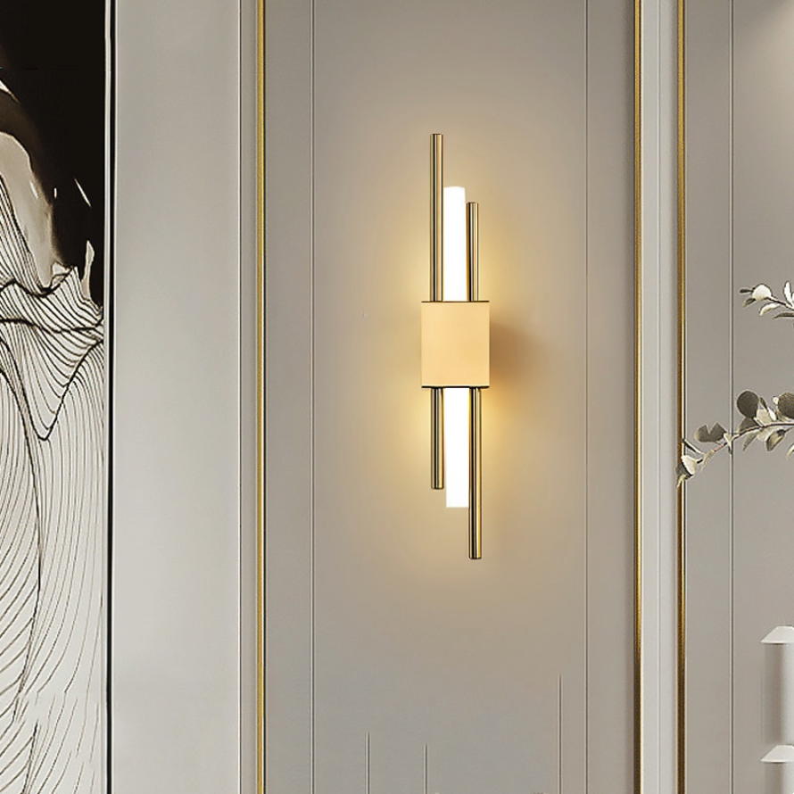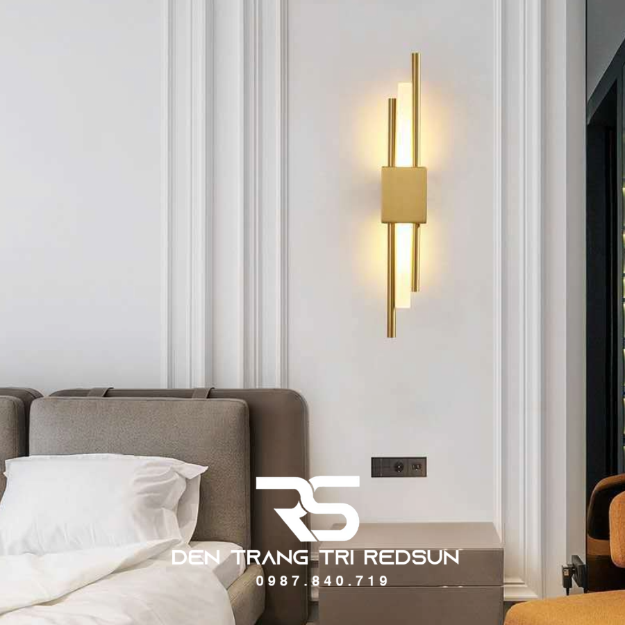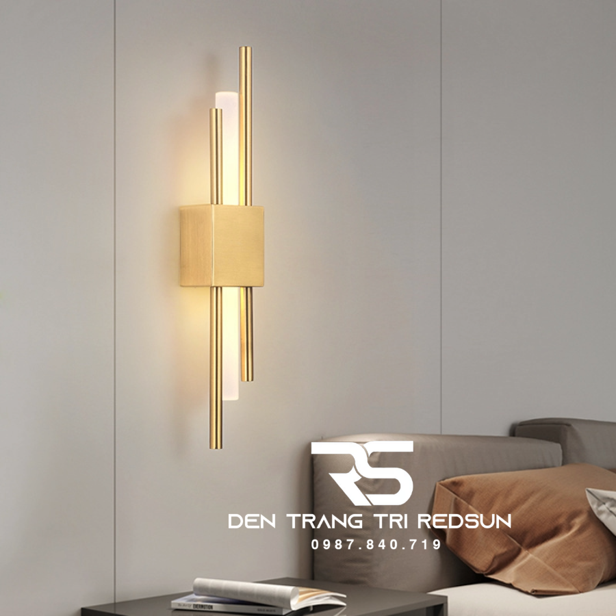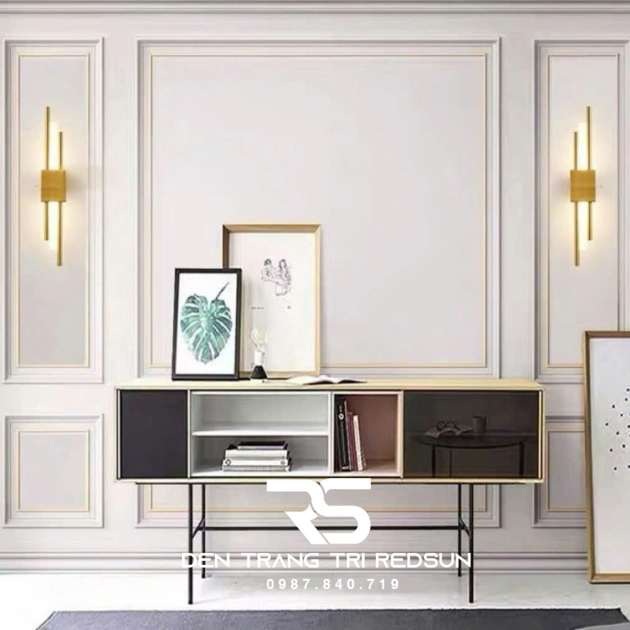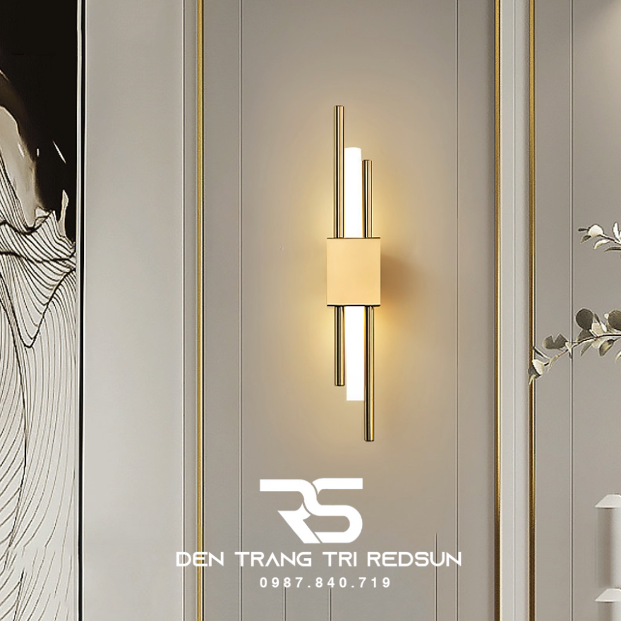 DT-1036 với thanh kim loại mạ vàng được sắp xếp một cách đối xứng, như những đường nét kiến trúc mạnh mẽ vươn lên cao, mang lại cảm giác thanh thoát và độc đáo. Phần trung tâm là khối hộp hình học tối giản, kết hợp hoàn hảo với ánh sáng dịu dàng lan tỏa, tạo nên một không gian sang trọng và đầy ấn tượng. Đây không chỉ là một chiếc đèn, mà còn là điểm nhấn nghệ thuật, tạo chiều sâu và phong cách cho mọi bức tường nơi nó hiện diện.