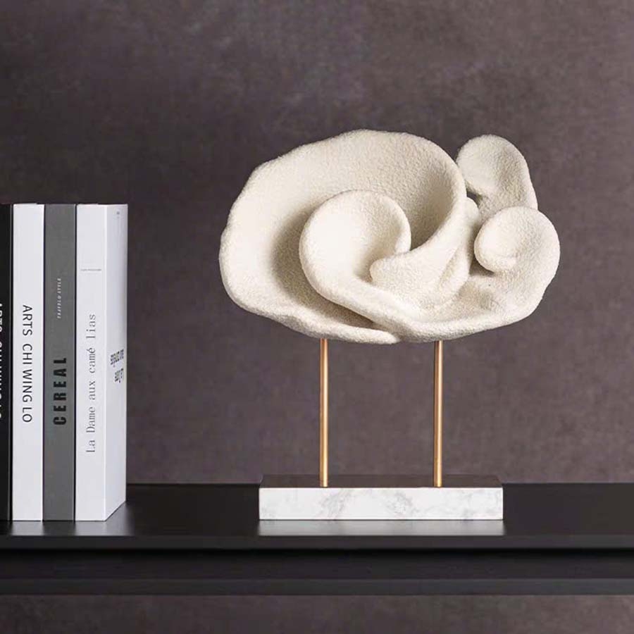 Đồ Trang Trí Nghệ Thuật Phòng Ngủ, Phòng Khách, Bàn Làm Việc Hình Ốc Sên DDC-ZG012 mang dáng hình trừu tượng của một chú ốc sên đang vươn mình, mẫu decor để bàn này là sự kết hợp tinh tế giữa nghệ thuật hiện đại và vẻ đẹp thiên nhiên. Với các đường nét uốn lượn mềm mại, khối hình được chế tác từ chất liệu composite màu trắng, bề mặt phủ lớp nhám mịn tạo hiệu ứng thị giác độc đáo. Thiết kế nổi bật với hai trục kim loại thanh mảnh và chân đế đá cẩm thạch trắng, sản phẩm vừa vững chắc vừa mang lại cảm giác thanh lịch. Hình ảnh ốc sên tượng trưng cho sự kiên trì, chậm rãi nhưng vững vàng – rất phù hợp để trưng bày trên bàn làm việc, kệ sách, hoặc bàn console, tạo điểm nhấn nghệ thuật tinh tế cho không gian sống.