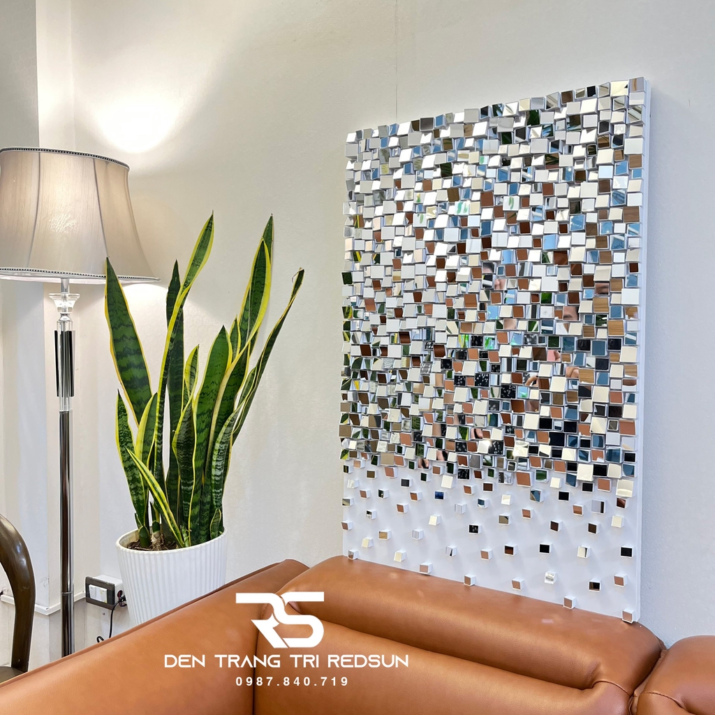 1. MÔ TẢ SẢN PHẨM Gương trang trí nghệ thuật là loại gương được thiết kế với đa dạng mẫu mã, tạo nên bởi các chất liệu khác nhau. Ngoài chức năng nguyên bản là dùng để soi ngắm thì gương nghệ thuật còn được coi là món đồ trang trí giúp lấp đầy khoảng trống trên các bức tường thay thế những bức tranh làm cho không gian có tính thẩm mỹ cao và thể hiện được cá tính riêng của gia chủ. Gương Treo Tường Nghệ Thuật Trang Trí Phòng Khách, Phòng Ăn, Hành Lang Phong Cách Bắc Âu GDC-009 được thiết kế đơn giản, độc đáo với kết cấu sống động, bề mặt nhấp nhô, lấp lánh rực rỡ đầy màu sắc như ngàn ánh sao tạo nên bởi vô số các ô gương vuông nhỏ nhiều kích thước ghép lại. Là một sản phẩm đầy tính nghệ thuật, lãng mạn, tinh tế thích hợp cho việc trang trí tô điểm thêm nét cá tính sáng tạo cho không gian nội thất nhiều màu sắc hơn.