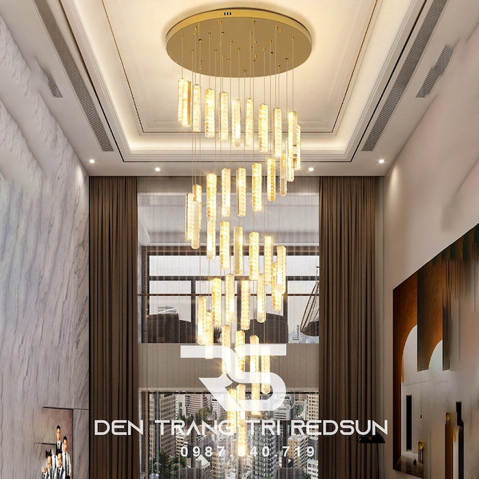 Đèn thả cầu thang thông tầng chất liệu pha lê cao cấp