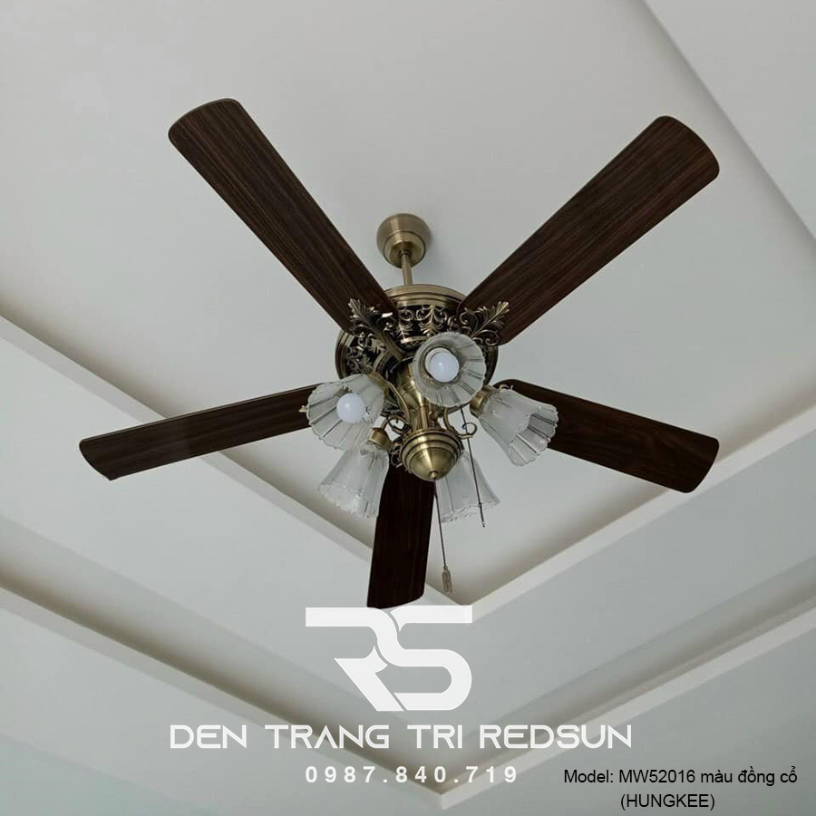 3. ĐỊA CHỈ MUA Quạt Trần Đèn Trang Trí Phòng Khách, Phòng Ngủ - MW52016 màu đồng cổ (HUNGKEE)